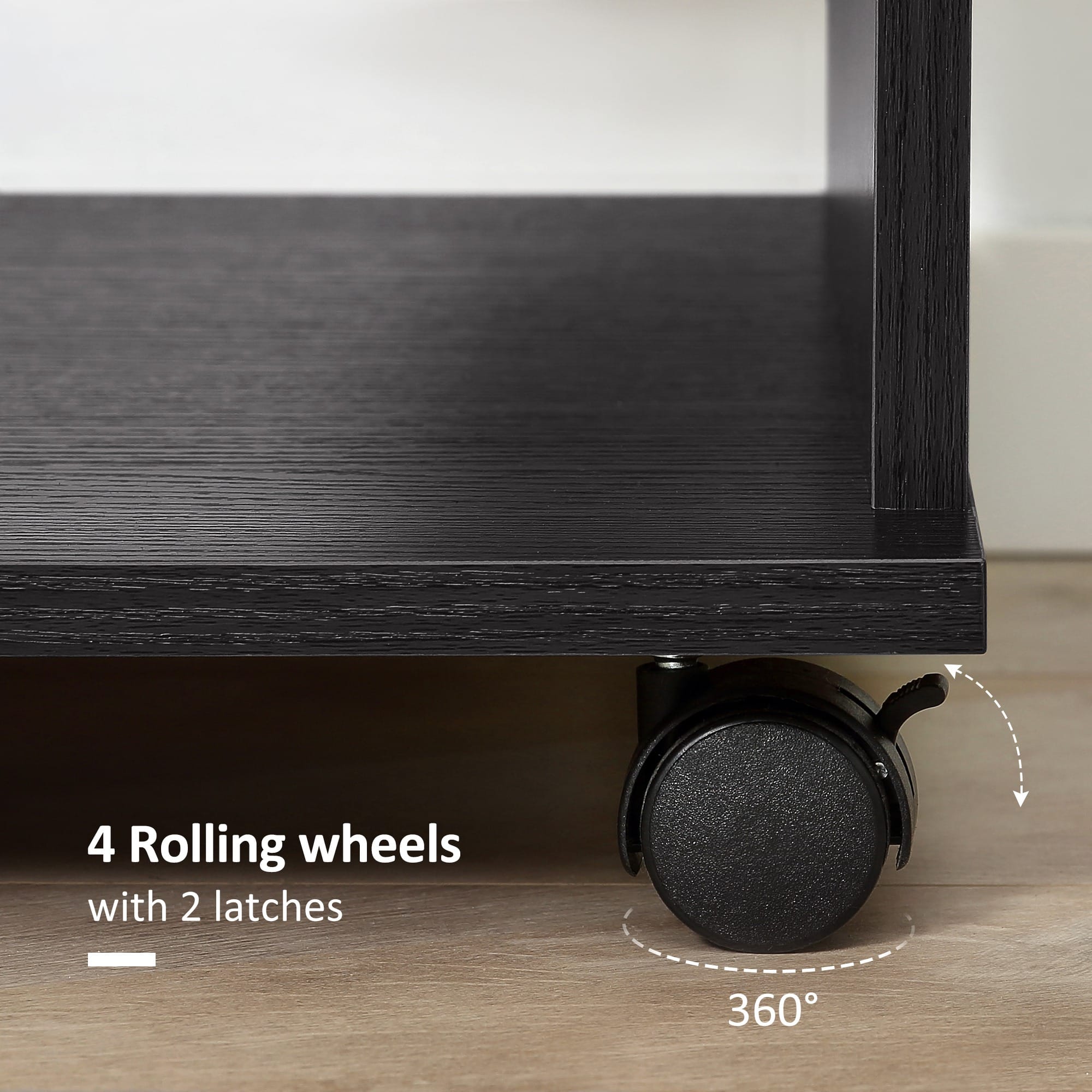 Rolling Open Wardrobe Hanging Rail Storage Shelves for Clothes, Black