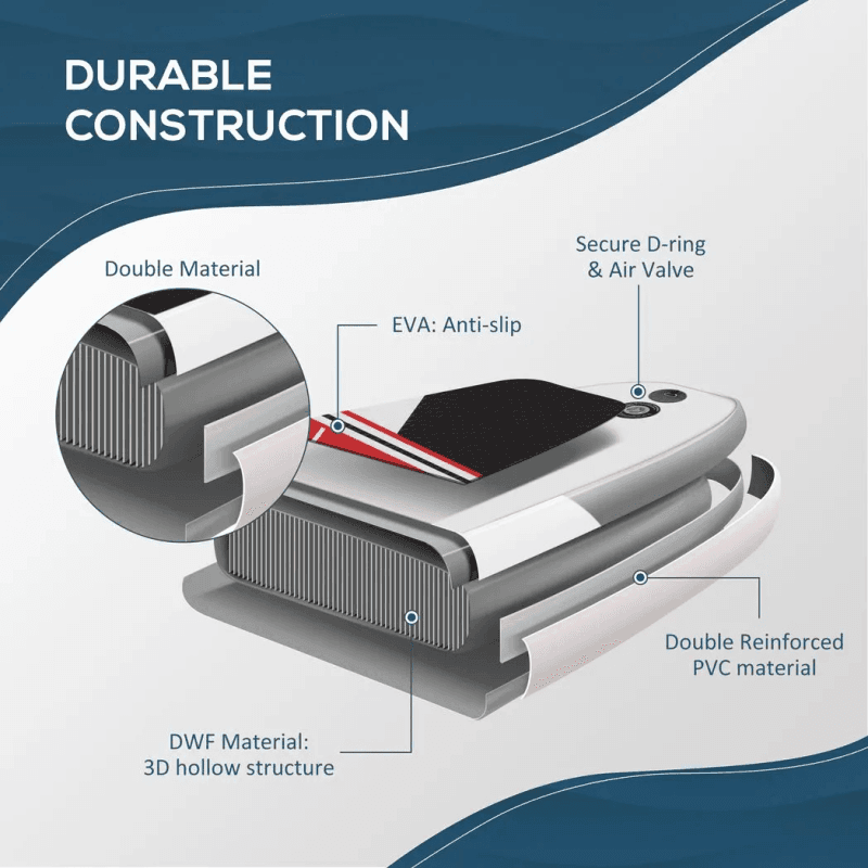 SAFE TO USE: A built-in D-shape buckle with a flexible rope, keeping your and your belongings secure to the board.
