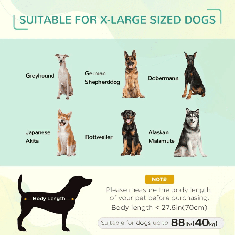 – Suitable for XXL dogs less than 80 cm in length and under 50 kg in weight.