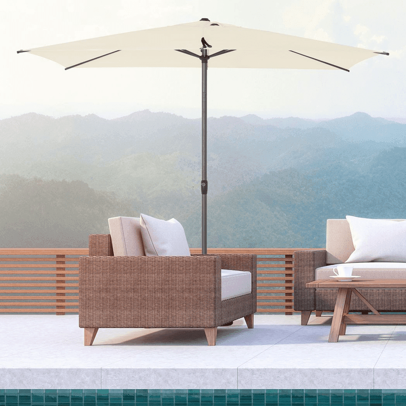 – ADJUSTABLE ANGLE: The tilting parasol moves to a 45° angle with the touch of a button, keeping you protected better from direct sun.