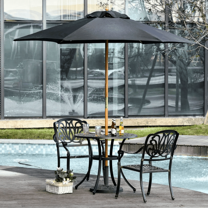 EASY TO USE: With convenient design, comes with a rope pulley mechanism for easy opening and closing. The spiral connector method for easy assembly and the outdoor parasol can be fixed in three positions by latch.