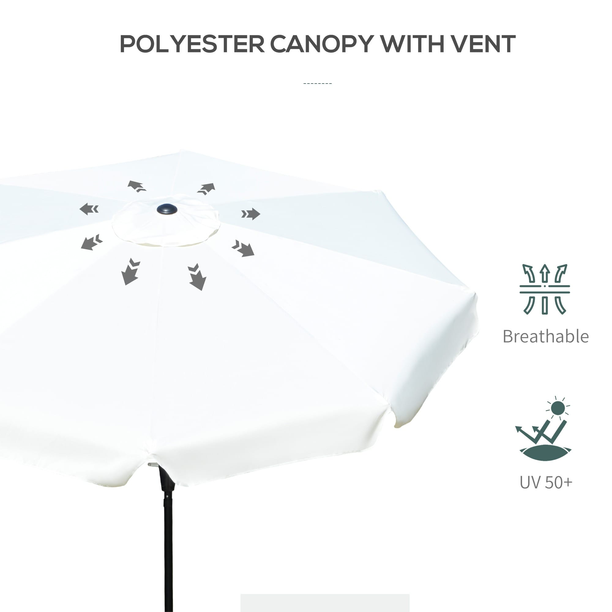 2.66m diameter large garden umbrella, provides shade for 4-6 people. Suitable for gardens, decks, patios and other outdoor areas