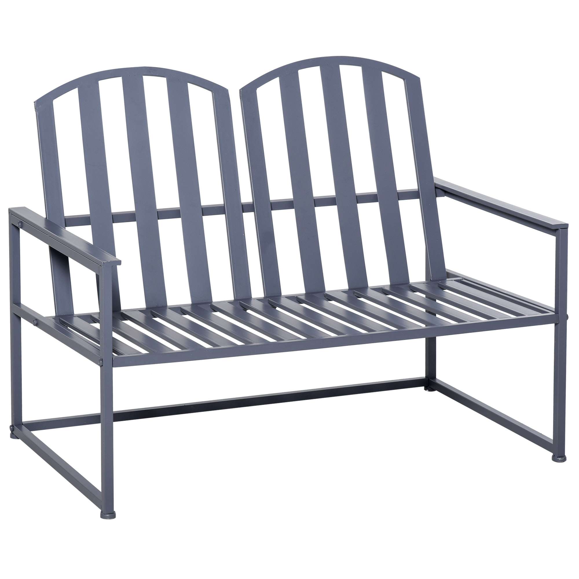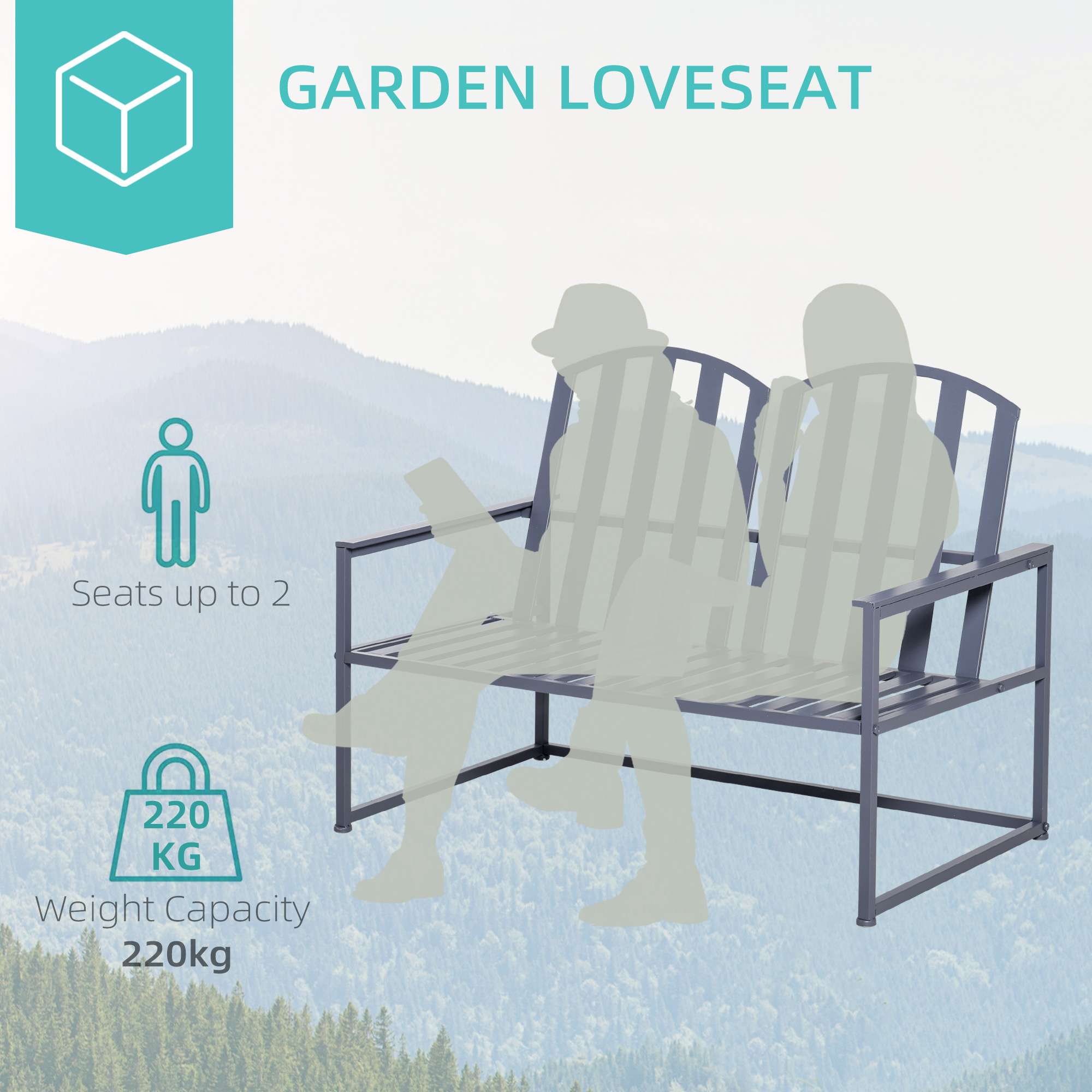 TWO SEATER: Space for you and someone else to sit together, the wide seat of this metal garden bench gives you plenty of room. SIMPLE AND STYLISH: A combination of a rectangular seat and curved seat tops creates a stand-out look which isn’t too overbearing. Grey colour is interesting and sleek. METAL STRUCTURE: Tough and solid, the park bench is suitable for outdoor use. Slatted all over so water doesn’t build up and damage the frame. HIGH BACK AND ARMRESTS: Keeps body supported when sitting on the outdoor bench. DIMENSIONS: 80.5H x 108W x 63Dcm. Seat: 32H x 100W x 45Dcm. MAXIMUM LOAD 220KG. ASSEMBLY REQUIRED.