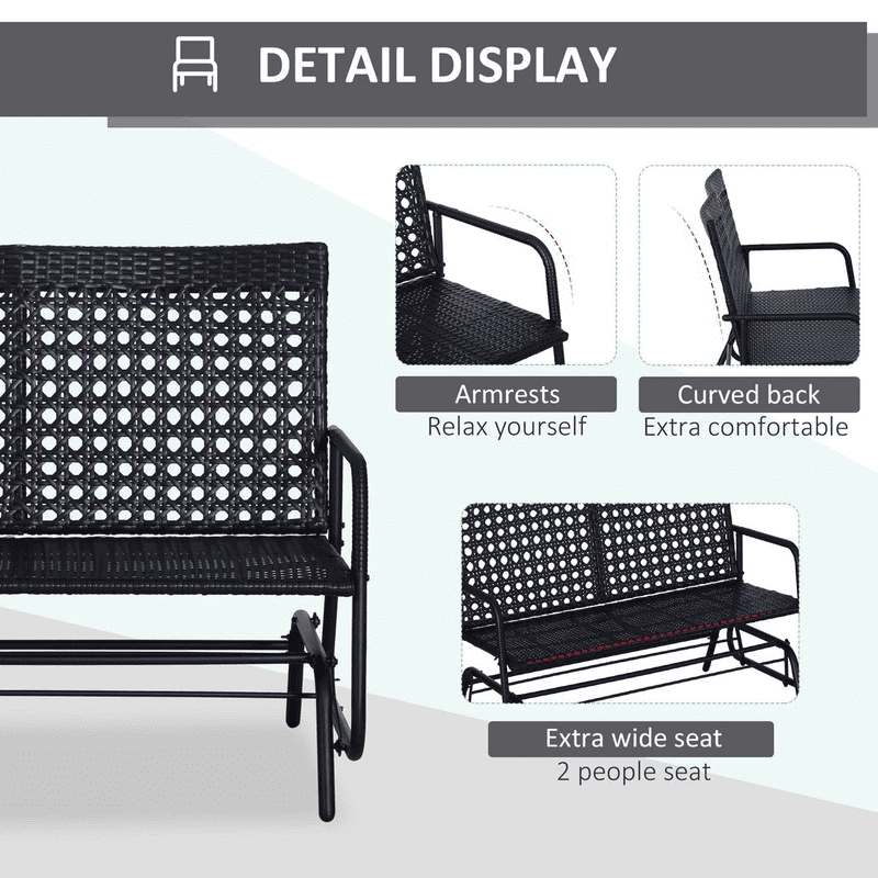 – 2 Seater Wicker Glider Bench Chair Rocking Chair Patio Garden Armchair