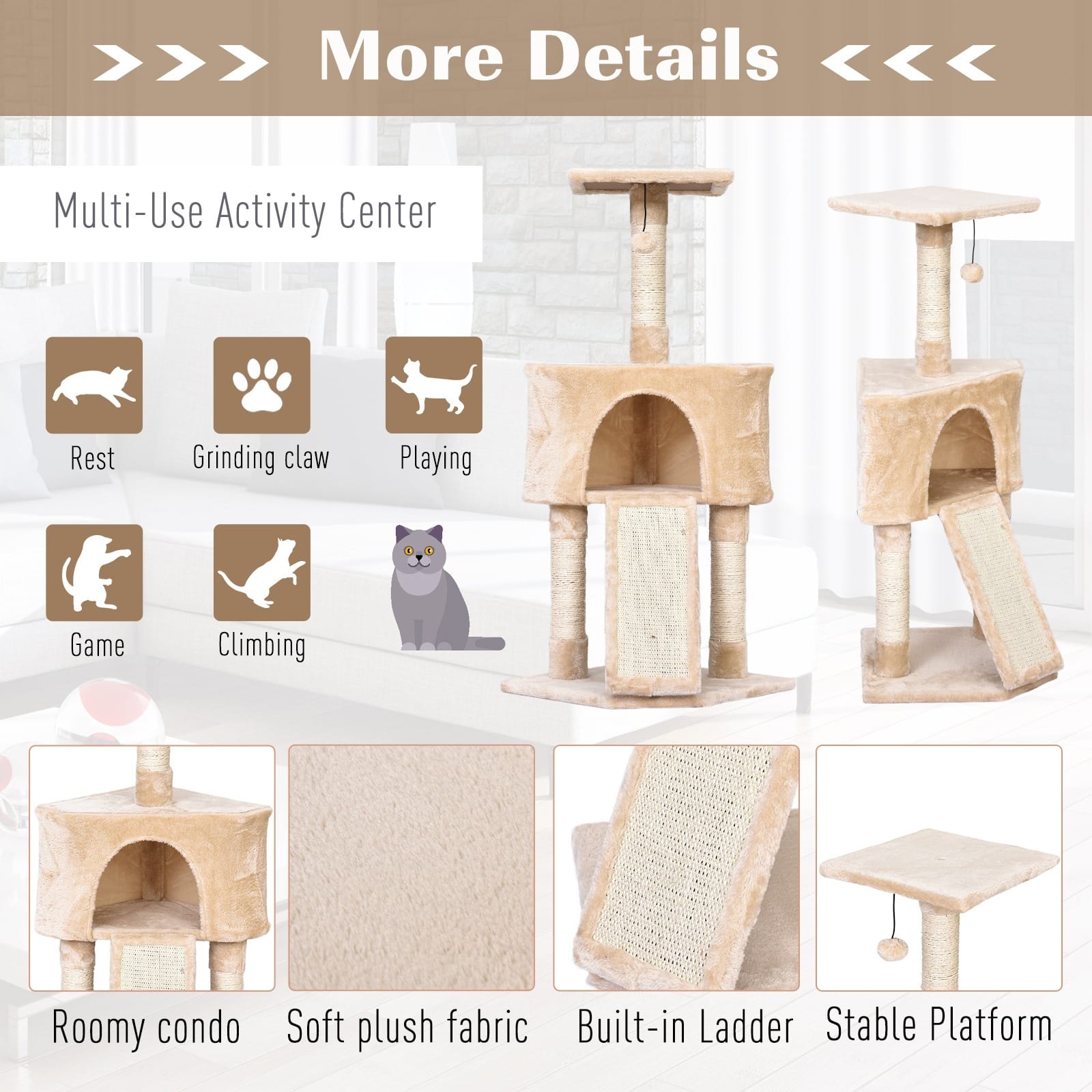 Particle board frame: Ensures the cat play tower is strong and resistant to moisture and warping for reliability, with a heavy base to keep the cat climbing tower upright.