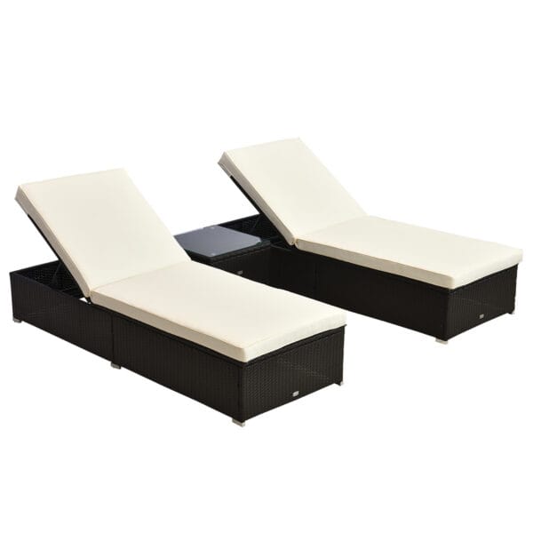 This rattan lounger recliner set from Outsunny is an ideal addition to enjoy the summers. Made using metal frame and PE rattan, in sturdy construction which will last for years to come. It comes with 8cm cushions filled with a vertical cotton to offer superior comfort. The table is topped with a 5 cm toughened tempered glass. Enjoy your outdoors summer to the fullest with this lounger set.
