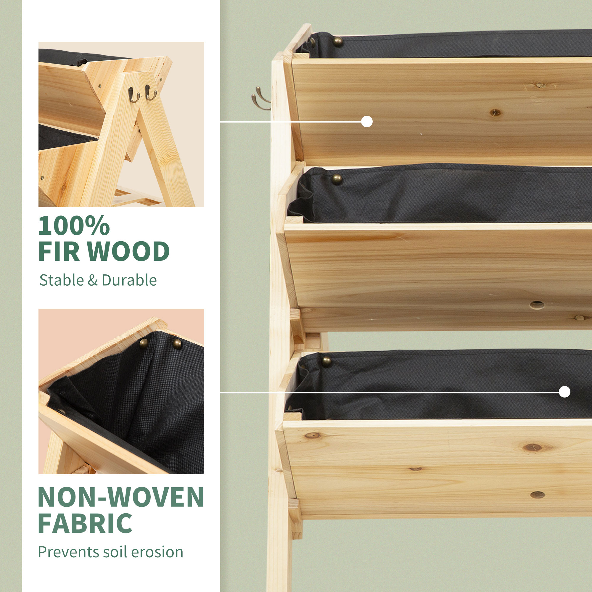 This 3 tier plant bed from Outsunny can be a good choice for those who like planting flowers or vegetables. 3 layers of flower stand provides ample space to plant, ideal for backyard and garden. Made with high quality fir wood for stability and durability. Non-woven fabric in the planting box for preventing soil erosion and holes on the bottom of flower stand for the outflow of excess water. You can place your tools on the clapboard or hang them on the hooks of the side. Let this practical plant bed dress up your garden!