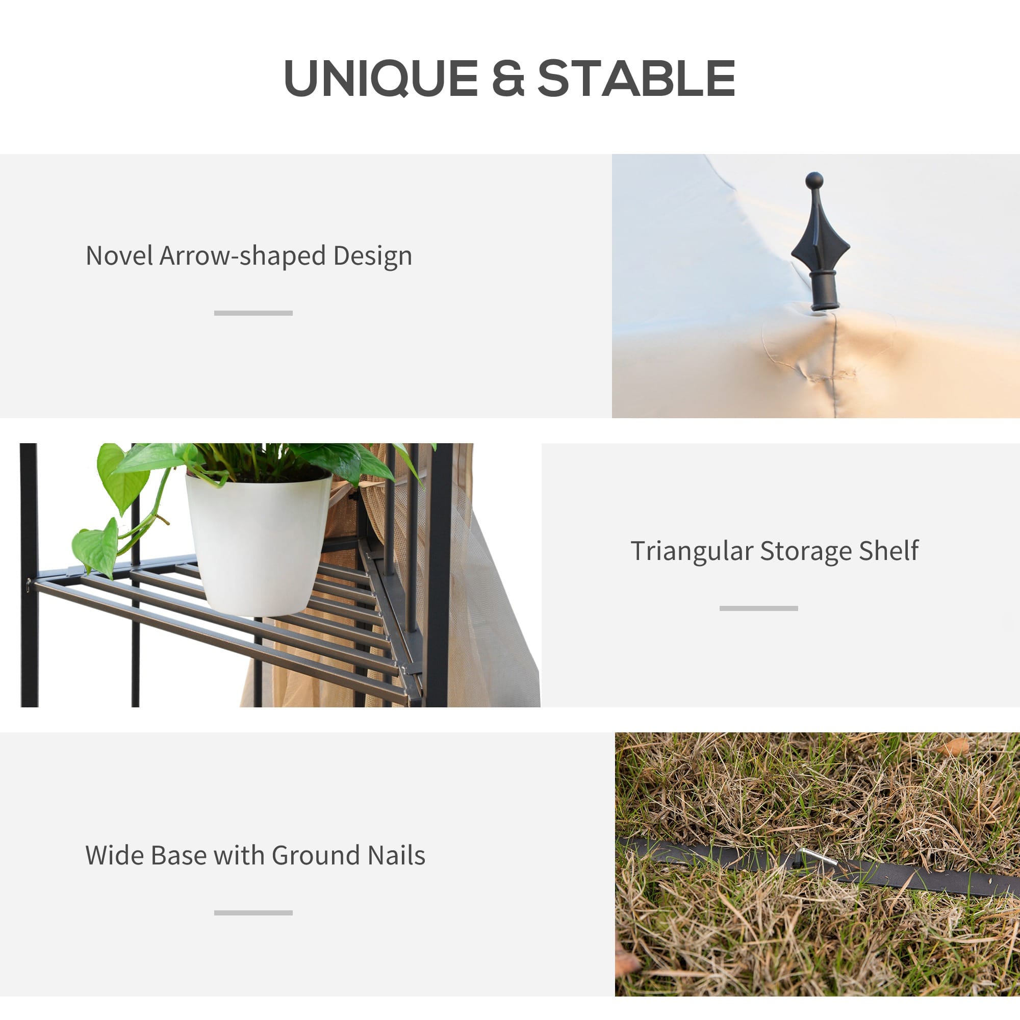 – ACCESSORIES SUPPLIED: Eight ground stakes to attach gazebo firmly to the ground.