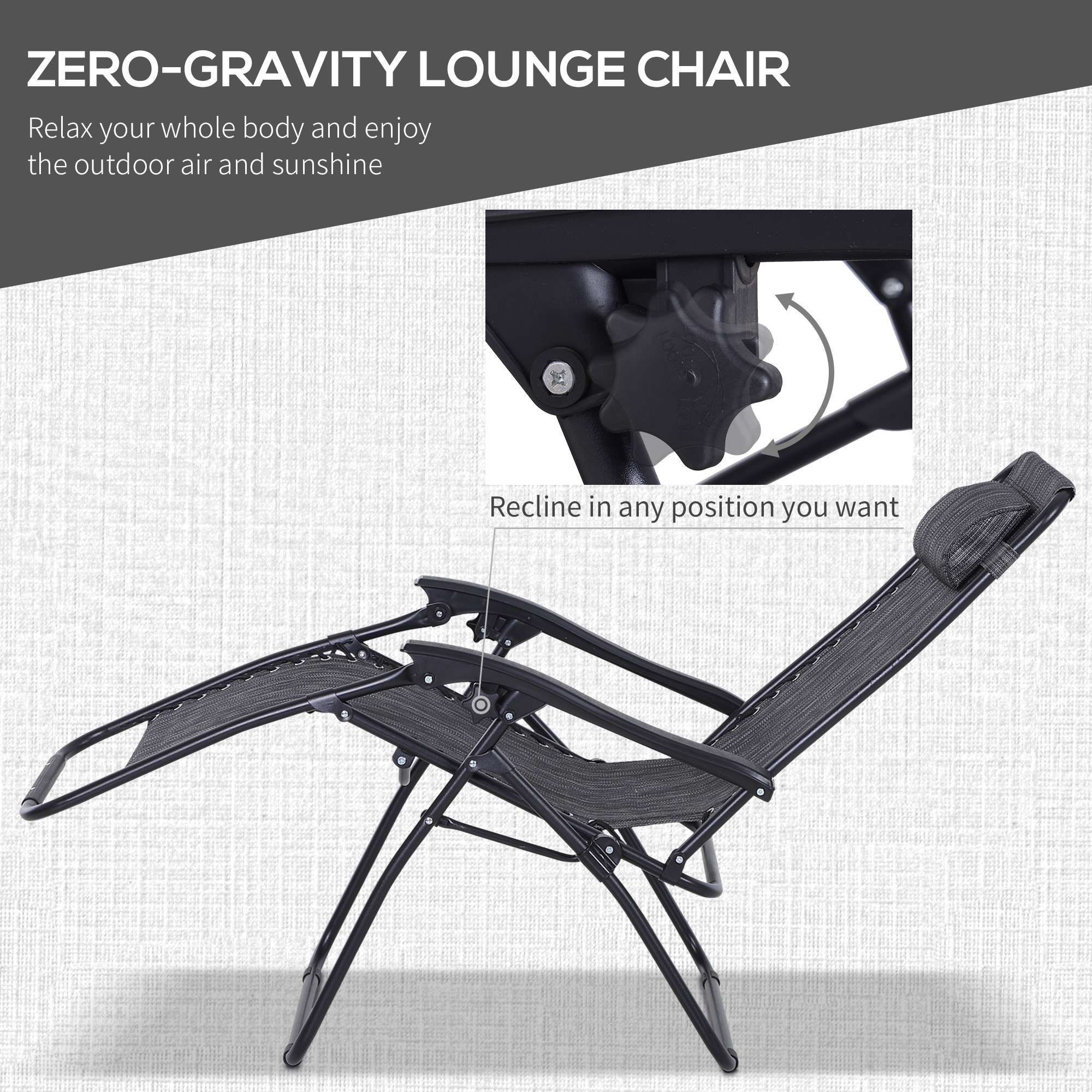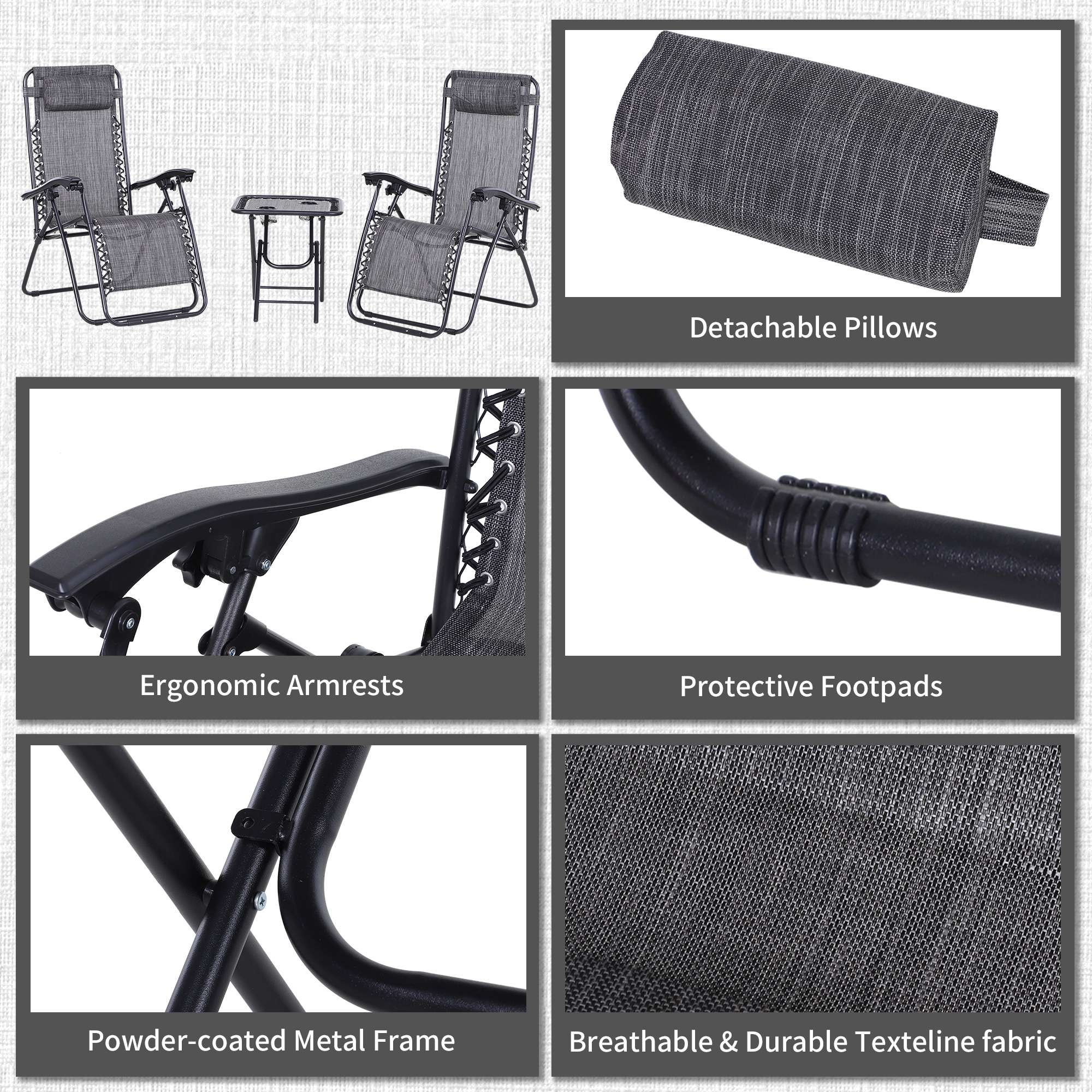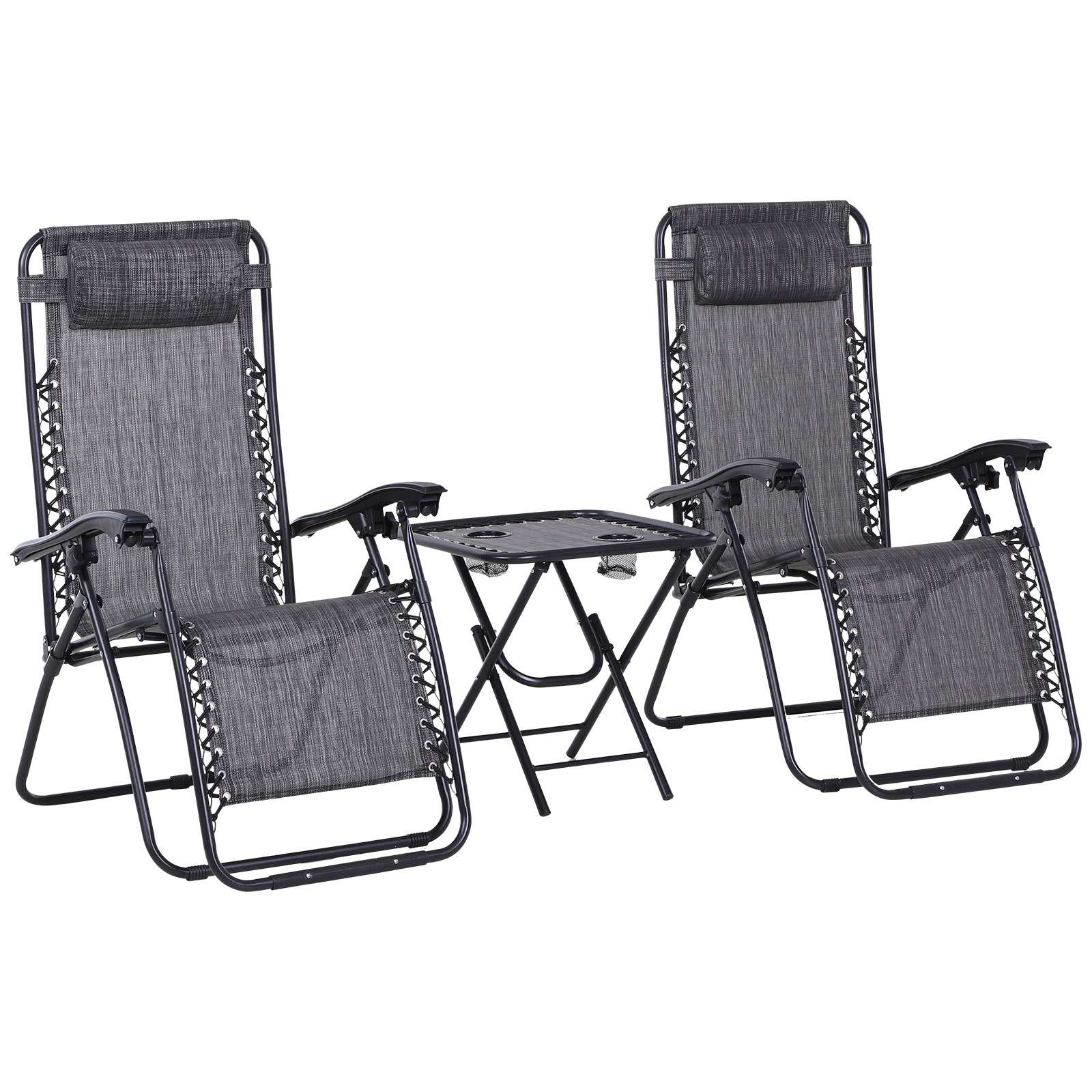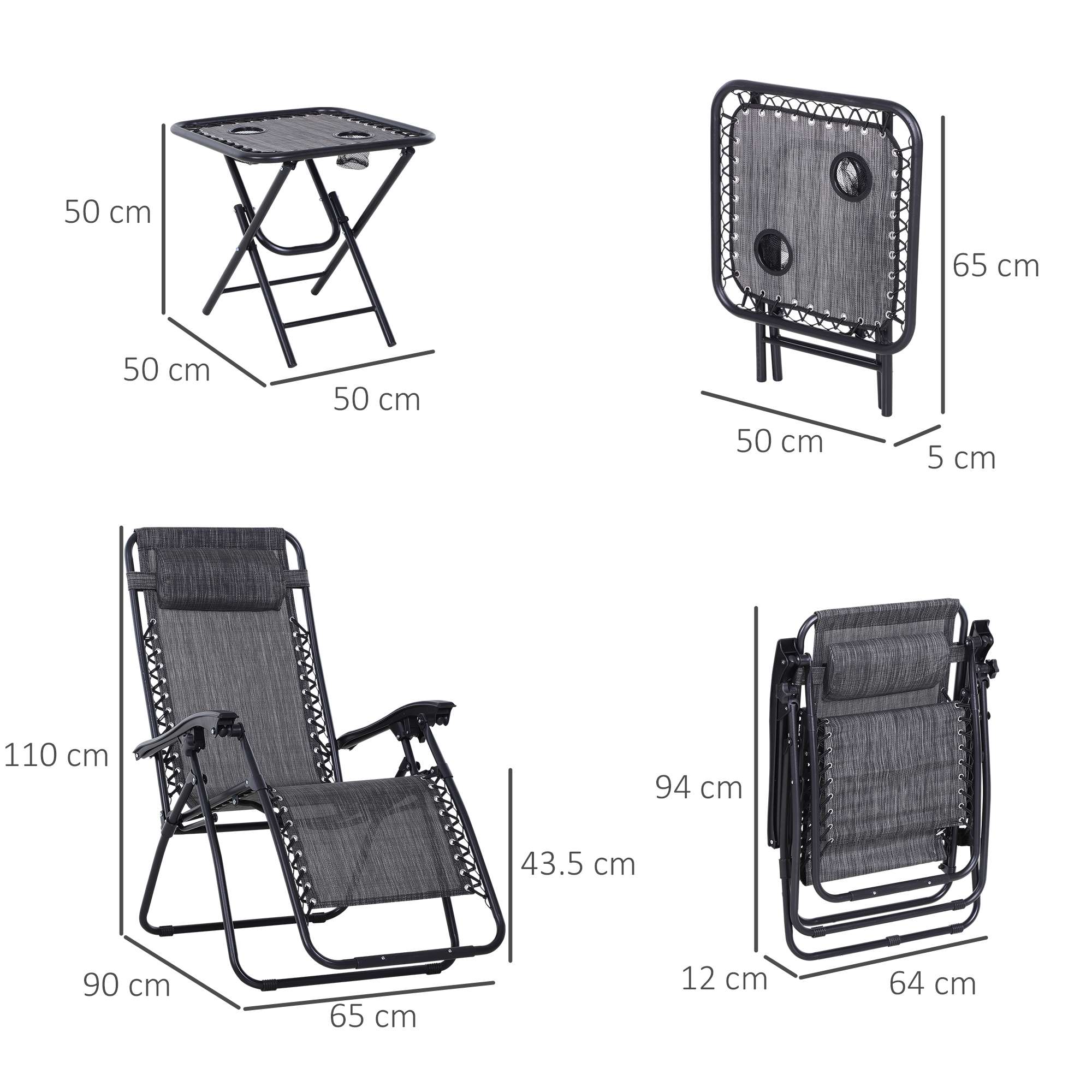 – 3PC Zero Gravity Chairs Sun Lounger Table Set Cup Holders – Light Grey Outsunny