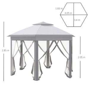 3 x 3(m) hexagonal gazebo with side for outdoor use: lots of sheltered space for your friends and guests