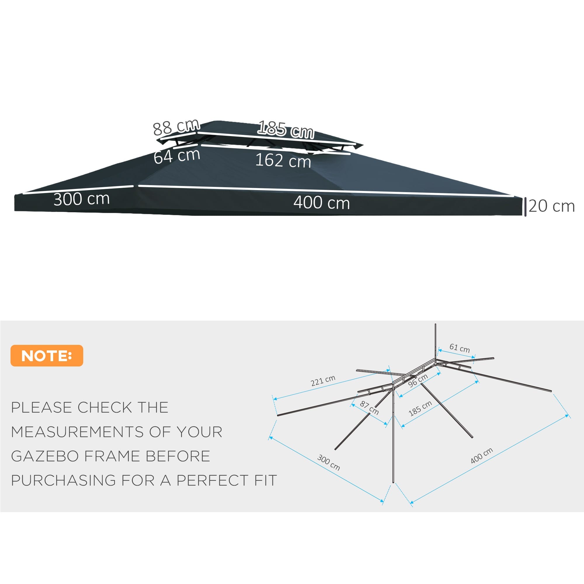 Please note, gazebo frame and side walls not included