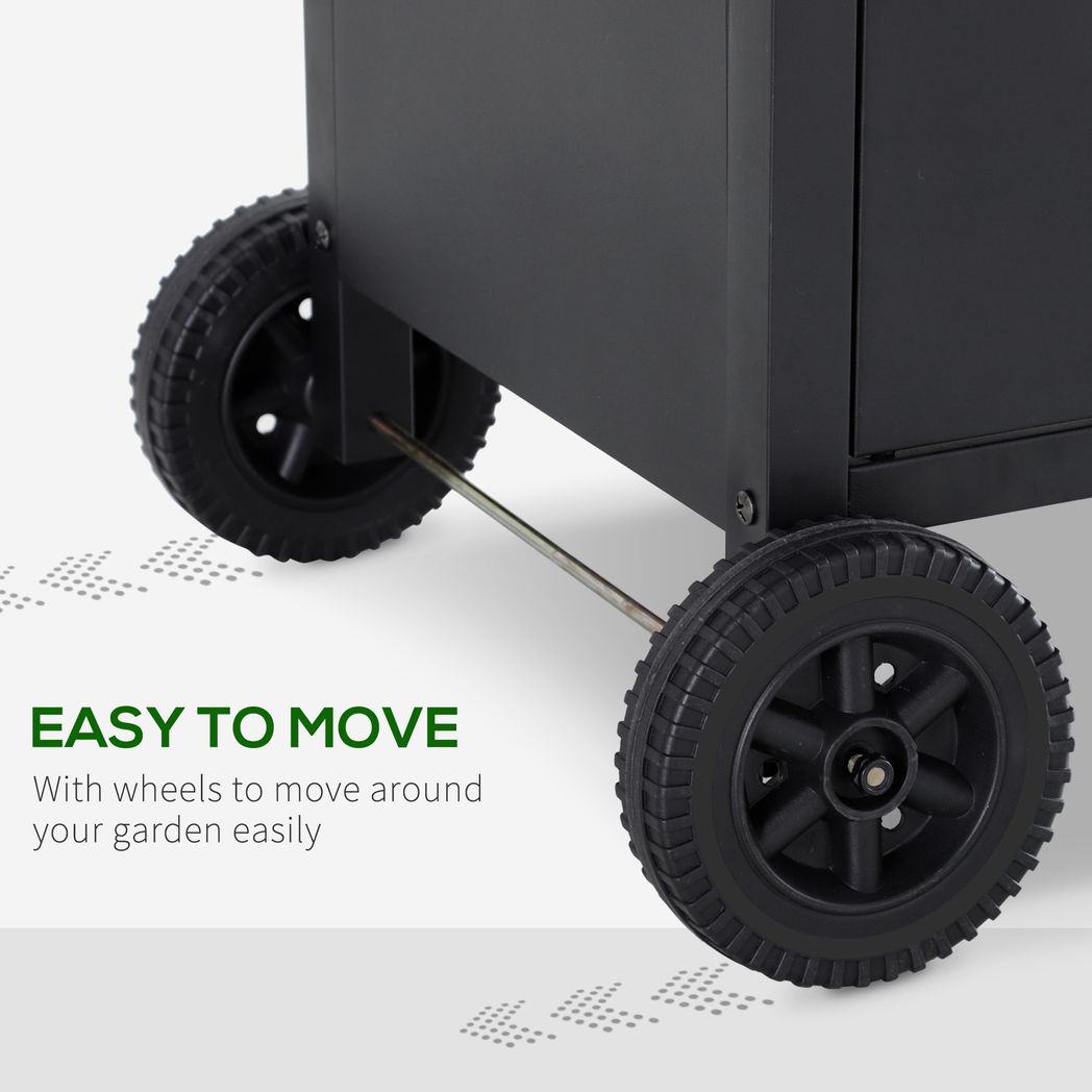 The 4 + 1 gas BBQ grill from Outsunny features 4 stainless steel burners and an aluminium side burner, ideal for outdoor barbecue parties. The lid design that helps preserve all the flavours. When preparing for your party, you can put all your grilling essentials and accessories within easy reach on the side tabletop or in the lower cupboard. Add the durable and safe BBQ and enjoy your cooking outdoors with complete peace of mind.
