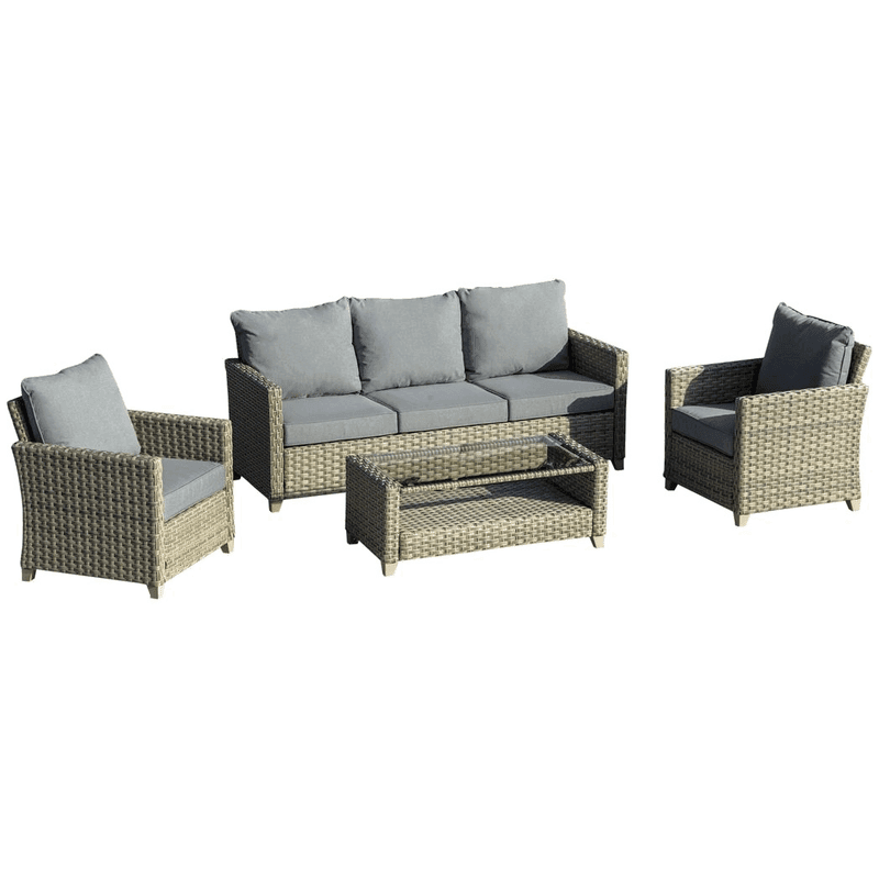 FOUR-PIECE SET: The rattan garden furniture sets are made for your garden and outdoors, and come with a three-seater sofa, two armchairs and matching coffee table – great for enjoying your space with company.