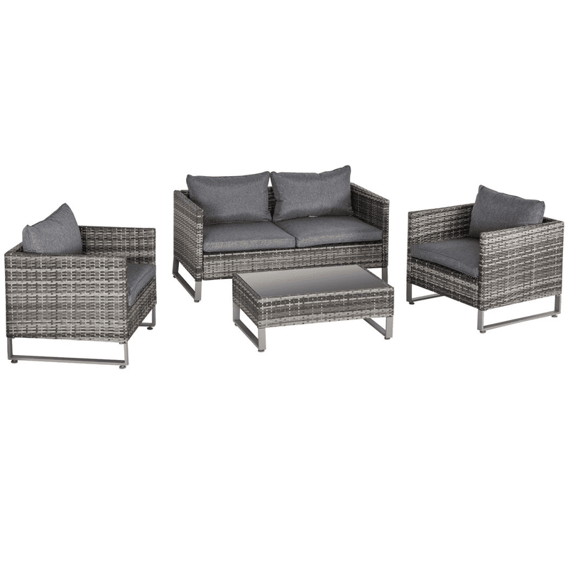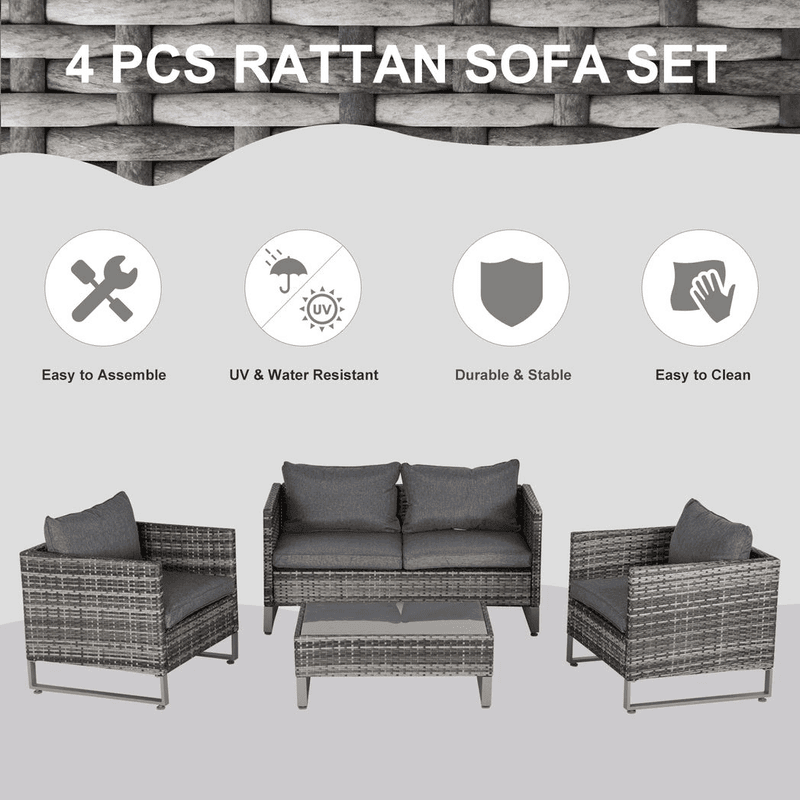 FOUR-PIECE SET: The rattan garden furniture sets come with two armchairs, double sofa, and oblong table – seating four people, the garden sofa set is perfect for bringing family and friends together outdoors.