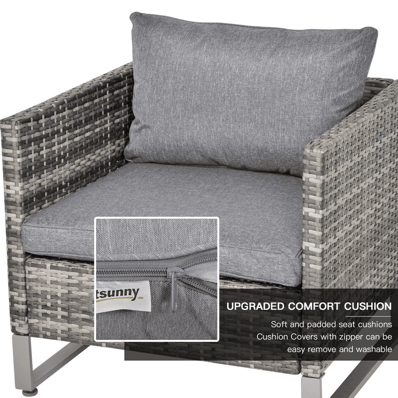 PADDED CUSHIONS: Seat and back cushions of the grey rattan sofa set on all seats, keeps you comfortable for long periods when being used. Covers of the garden rattan furniture sets are removable and washable.