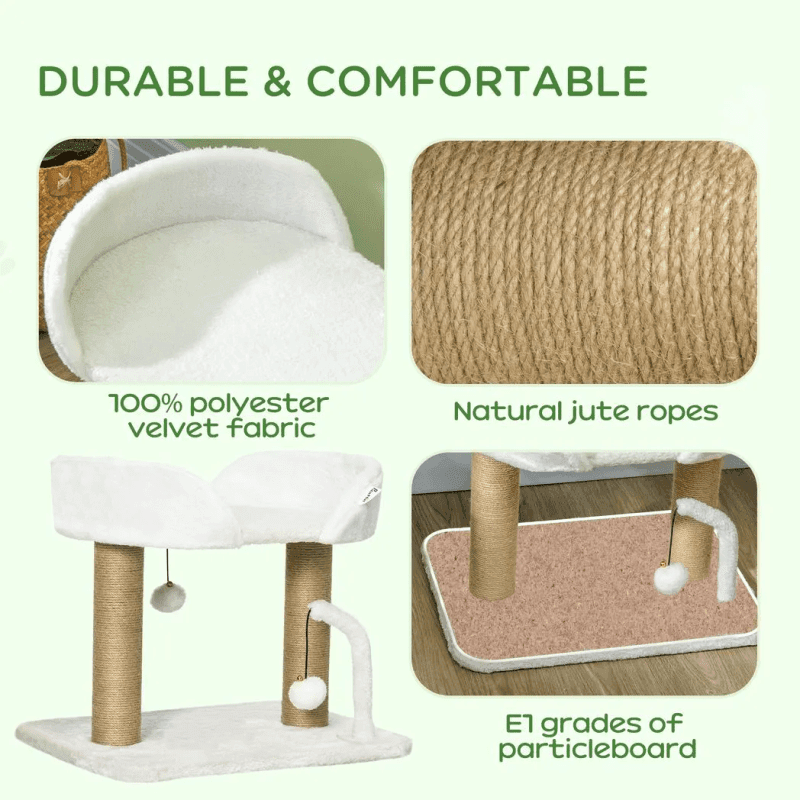 – Jute scratching posts: Pets can dig their claws into this cat play tower, deterring them from using furniture.