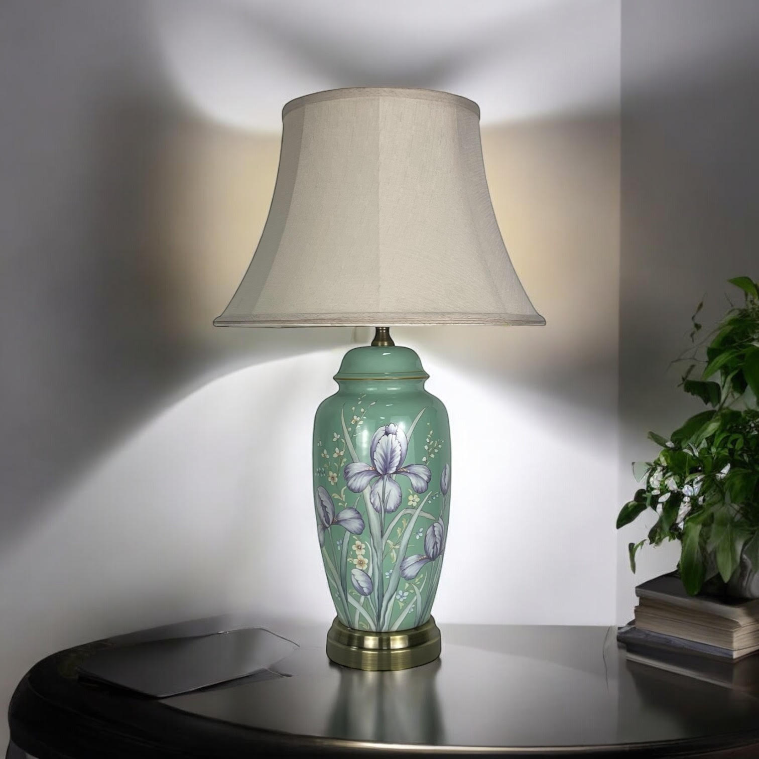 A traditional design ceramic table lamp base and shade. The lamp is individually switched by an inline rocker switch and is double insulated to allow for safe use without need of an earth wire. Great for lighting in any setting and ideal in a living room or bedroom.