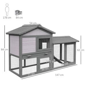 Two level house, made from Solid wood to ensure long lasting strength and plenty of room for you rabbit/guinea pig/hamster/other small pet to roam around – outside run area for your pet to get fresh air, surrounded by a tall mesh fence for protection – easy access, with a Removable roof, window, a door with latch and Pull-out tray for cleaning and more.