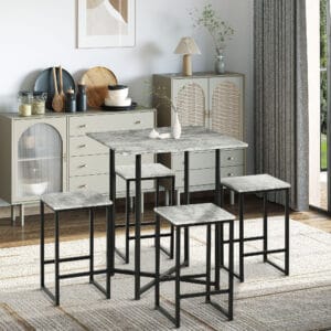 ? MDF tops are durable and easy to wipe clean. Grey marble effect is beautiful