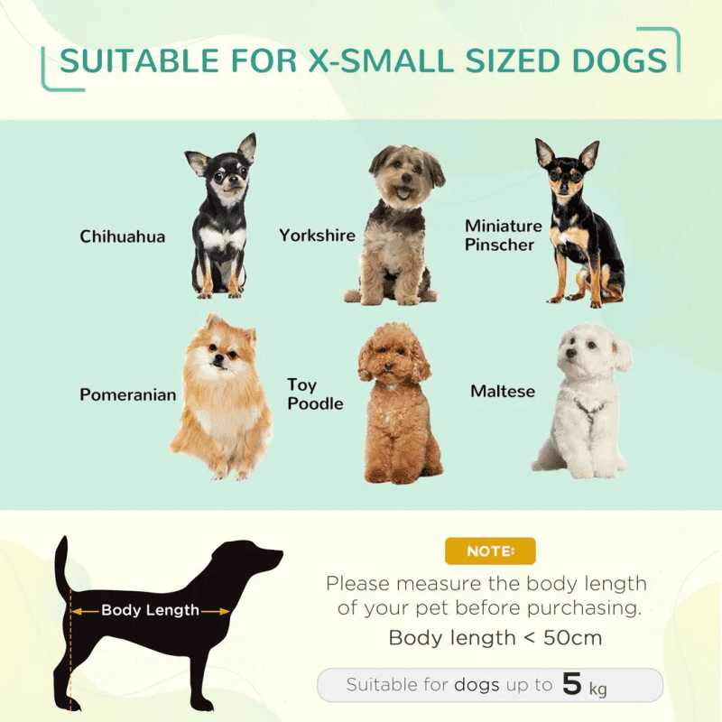 – Suitable for small dogs less than 35 cm in length and under 10 kg in weight.