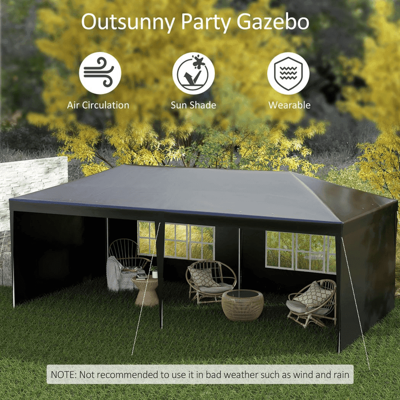 5.83 x 2.95m camping gazebo: Large and spacious, a place to hold garden and outdoor parties, BBQs, family gatherings, birthdays, garage sales – whatever you need it for.