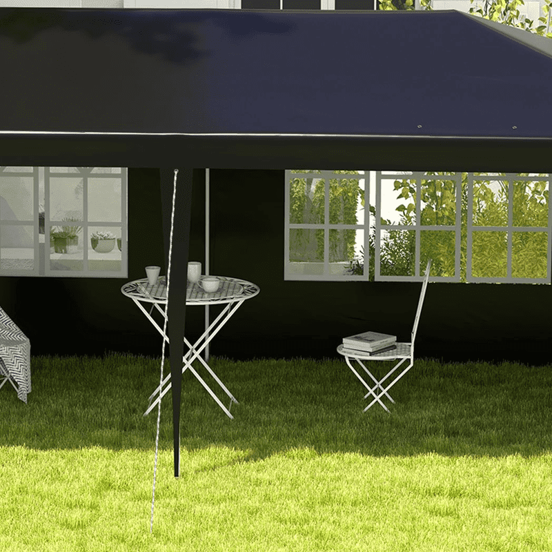 Accessories included: 6 x guy ropes and 12 x ground pegs – helps keep party gazebo standing steady.