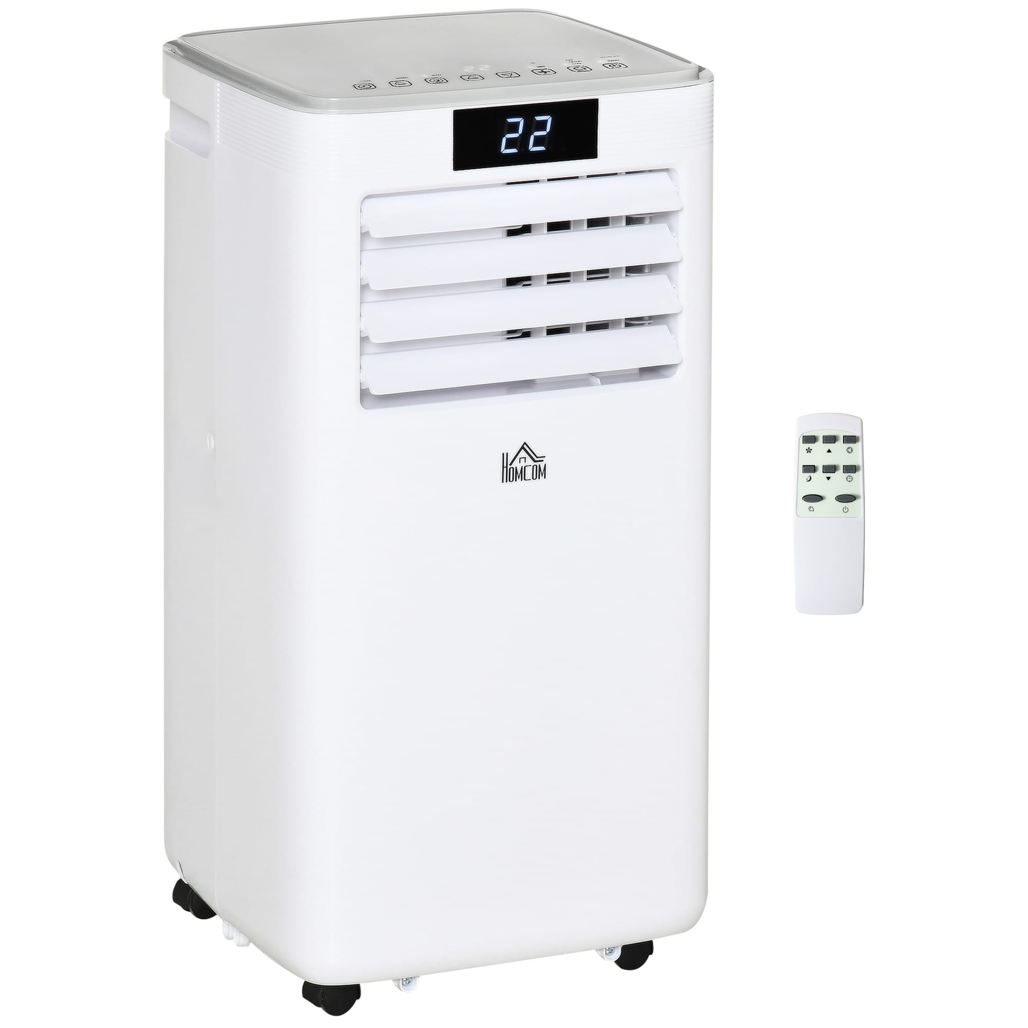 COMPACT, WITH WHEELS: Small, but mighty. This air conditioning unit can fit into smaller areas with ease. Four swivel wheels on the base to move around easily.