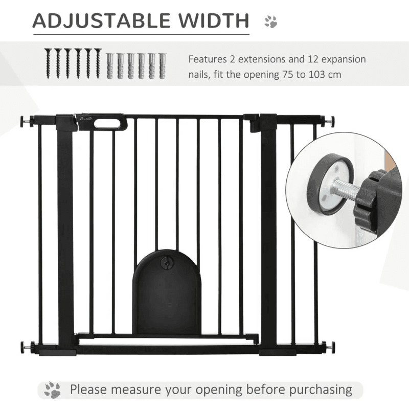 – “75-103 cm Extra Wide Pet Safety Gate, Stair Pressure Fit, Double Locking, Black”