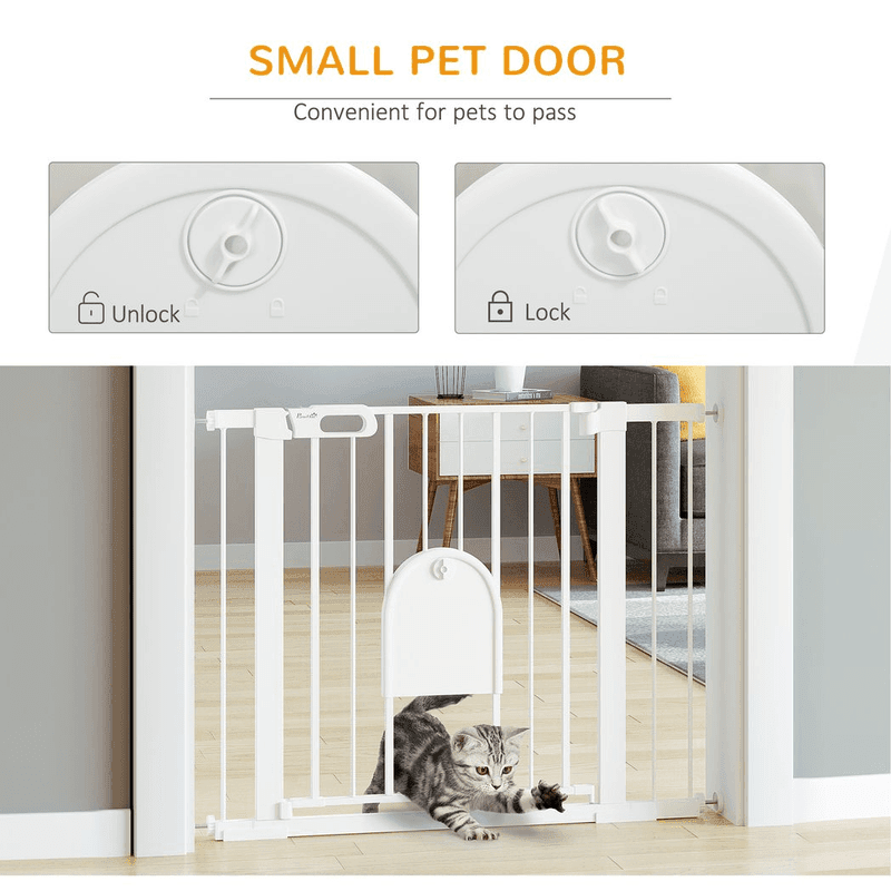 75-103 cm Pet Safety Gate Pressure Fit Stair with Small Door Double Locking