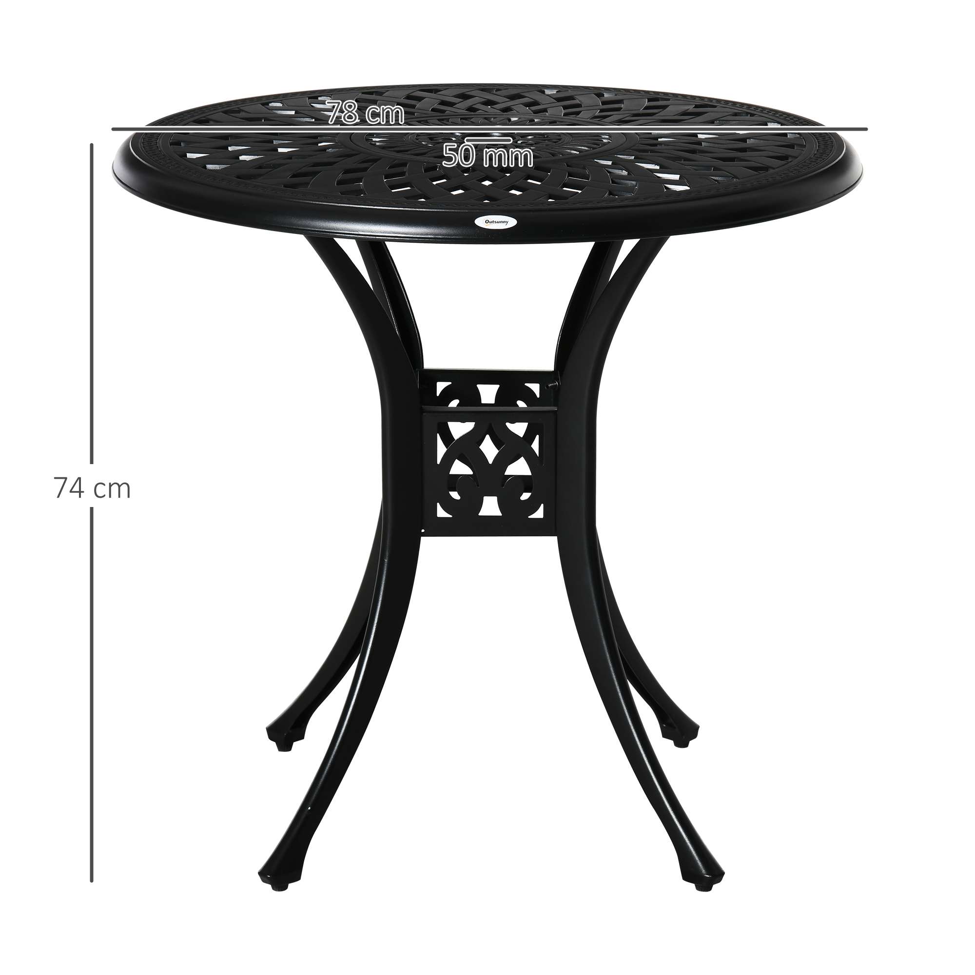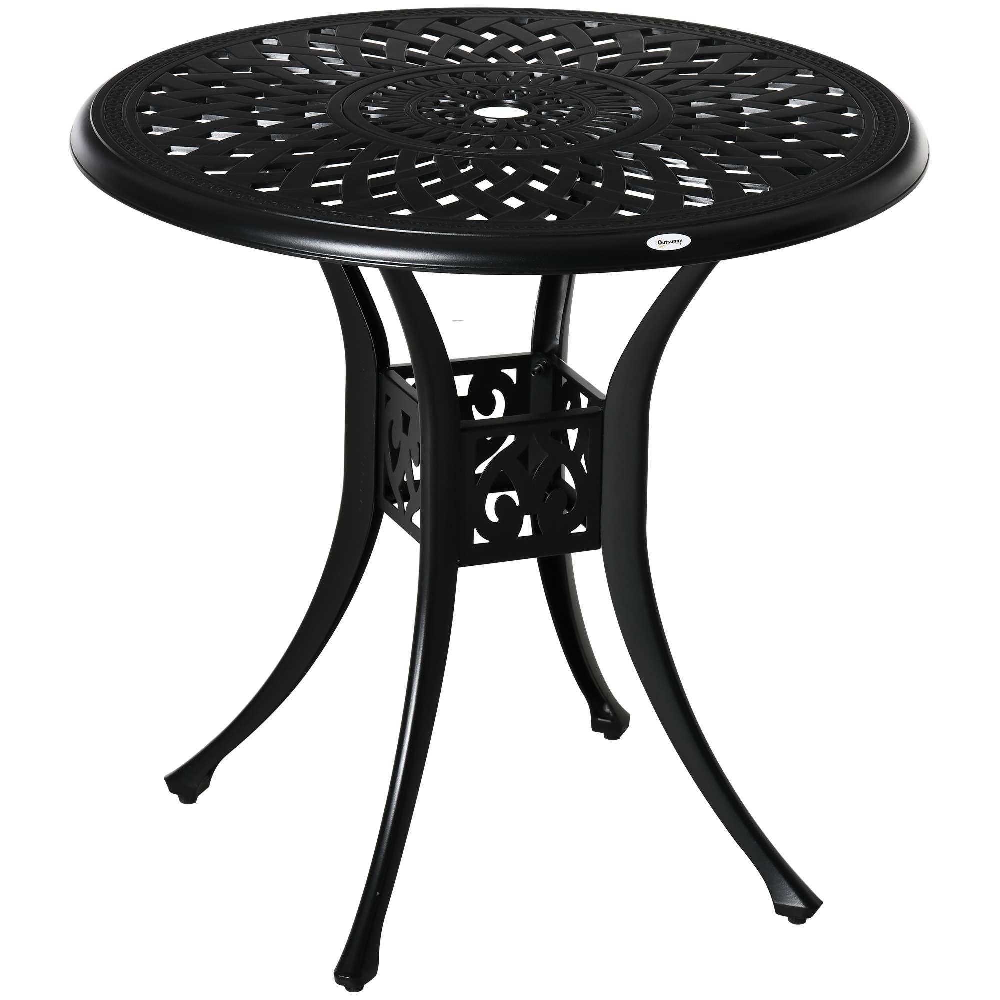 – 78cm Round Garden Dining Table with Parasol Hole Cast Aluminium Black Outsunny