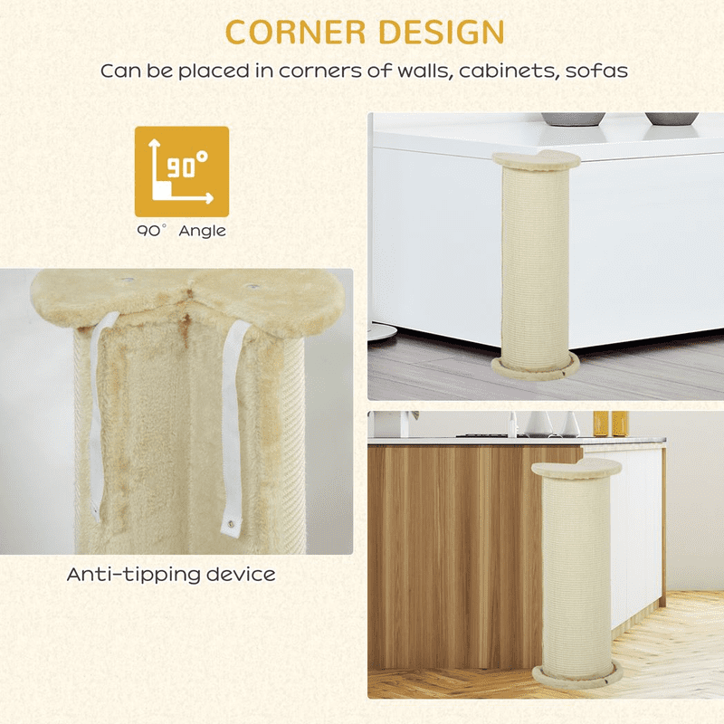 Brand: PawHutColour: Beige- Material: Particle board, plush and sisal- Dimensions: 85H x 35L x 35Wcm. Base: 35L x 35Wcm. Post diameter: Ø26cm- Item label: D30-553V00CW