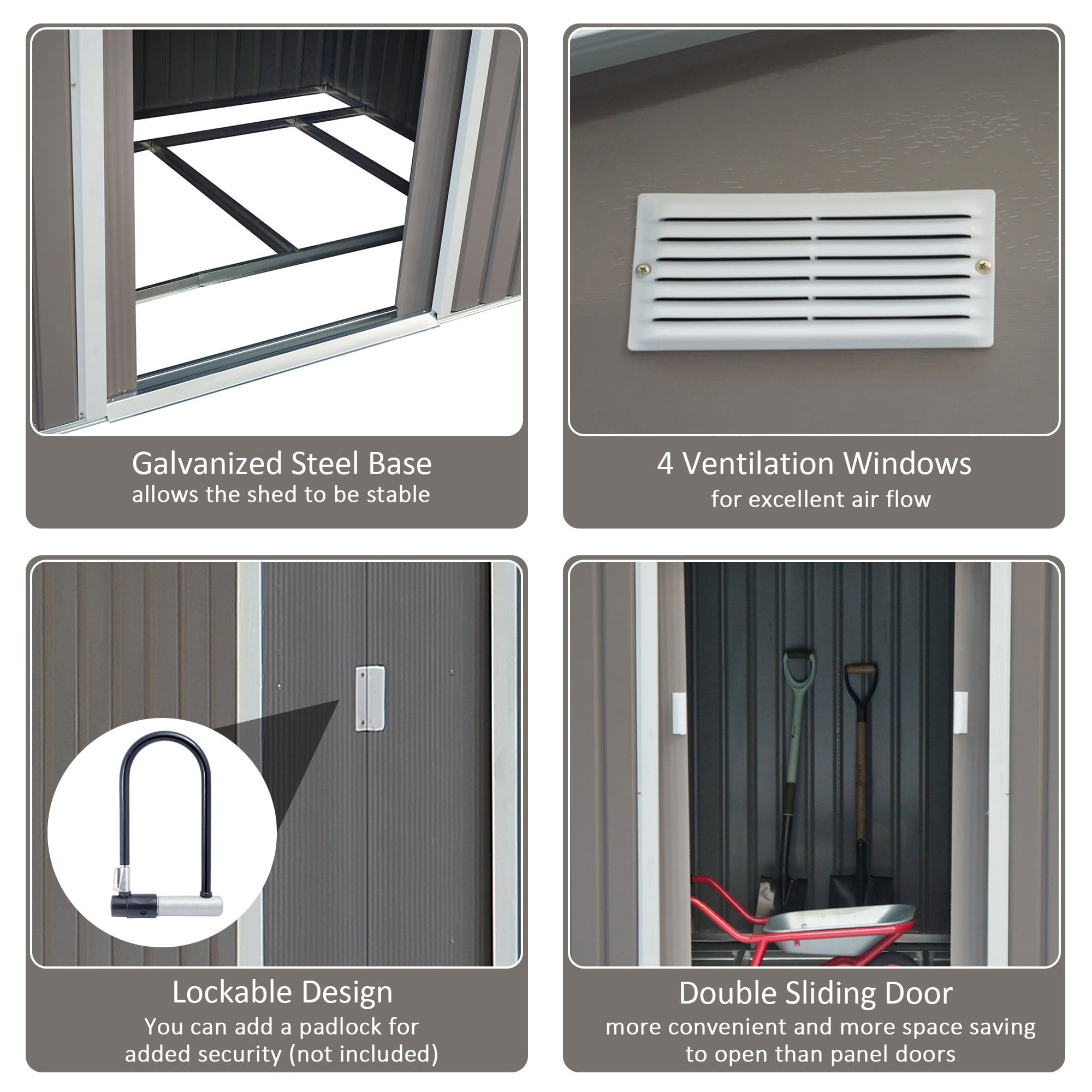 Keep your garden equipment and outdoor essentials locked away securely with this fantastic outdoor shed from Outsunny. Made from colour steel for enduring reliability. With a sloped roof sitting on the top to help prevent water stagnating and rust forming, this shed is finished with a protective weather coating and floor foundation so you have everything you need to install this piece. The perfect home for all your outdoor tools and gear.