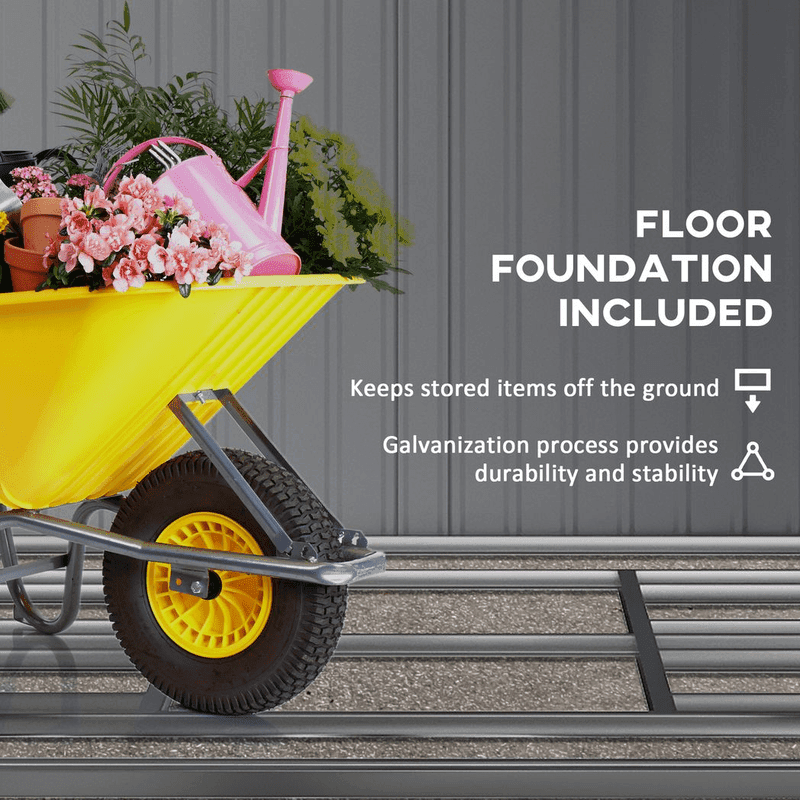 Sloped roof: Rainwater will not build up and stagnate on the top of this large shed. helps prevent leaking inside and rusting.
