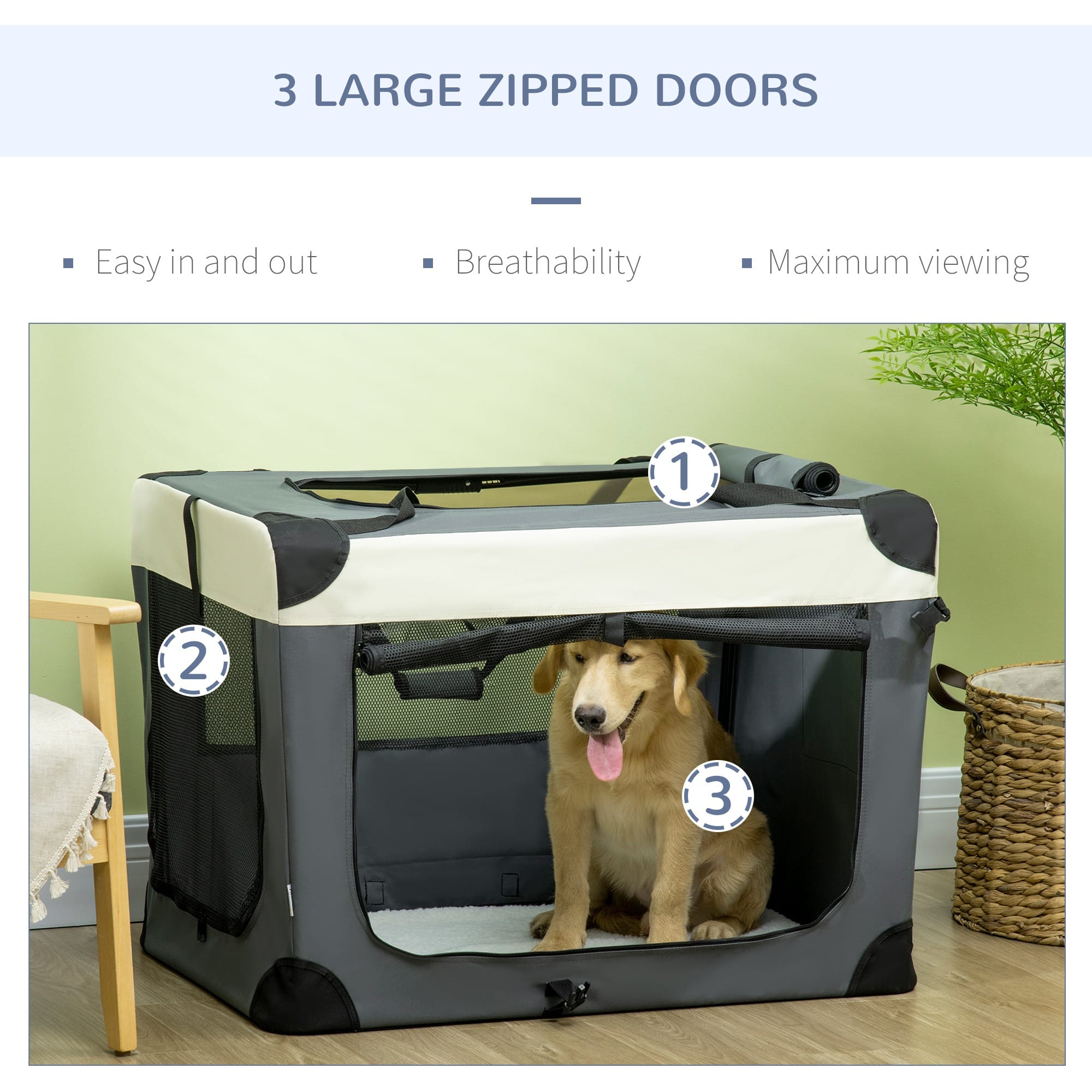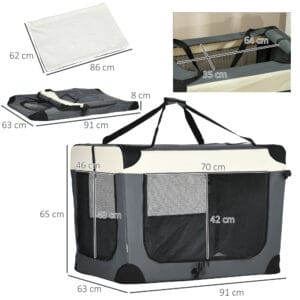 – “91cm Foldable Pet Carrier w/ Cushion, for Large Dogs and Cats – Grey Pawhut”