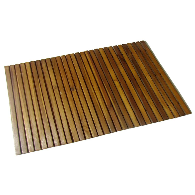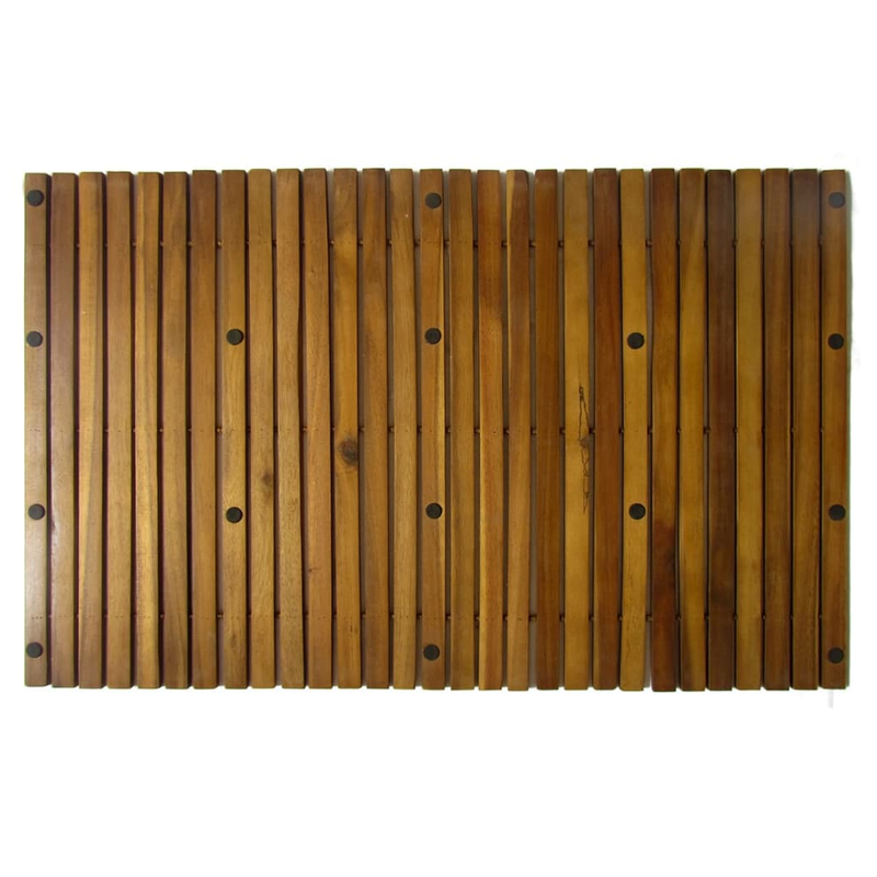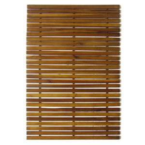 The high-quality wooden bath mat is particularly suited for the bathroom or sauna area. The mat is made of high-quality acacia wood, a tropical hardwood, which of course is weather-resistant and highly durable. The mat is equipped with rubber backing to prevent slipping.