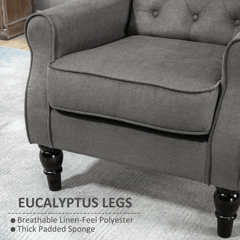 Comfy chair: Padded bottom seat, with high back and armrests for support. Linen-look upholstery is smooth and easy to spot clean.