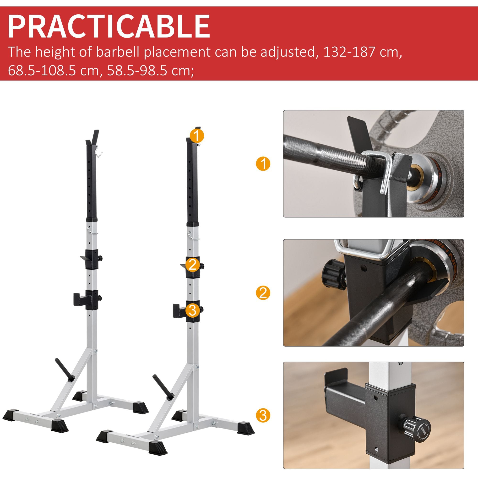 SET OF TWO: Brings the squat rack to the comfort of your own home, allowing you work on your legs, arms waist through squats, presses, lunges and everything else you love to do.