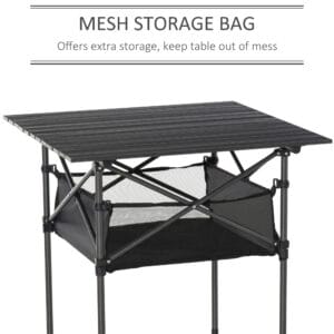ROLL-UP ALUMINIUM TOP: Detaches easily and packs away easily. Lightweight so it doesn’t weigh you down when carrying this portable table. Weather-resistant and easy to clean.