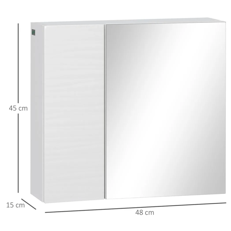 Store differently-sized toiletries and beauty accessories easily. On-wall design: Simply attach this bathroom storage cabinet to the wall to save floor space and make it easy to access. Use over the toilet or sink as the best position. Durable structure: Particle board for everyday use, with a melamine coating for mild protection. Dimensions: 45H x 48W x 15Dcm. Maximum load 3kg per shelf. Assembly required.
