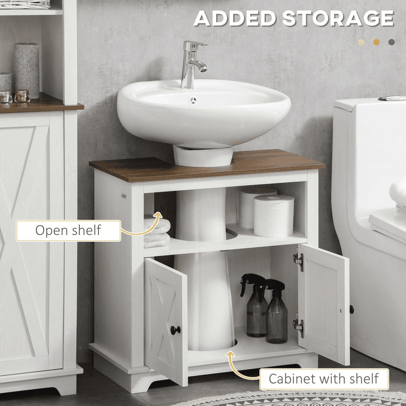Space-saving: Under-sink bathroom cabinet fits in neatly below your sink, ‘U’ shaped design fitting around the neck. Measure before purchase.