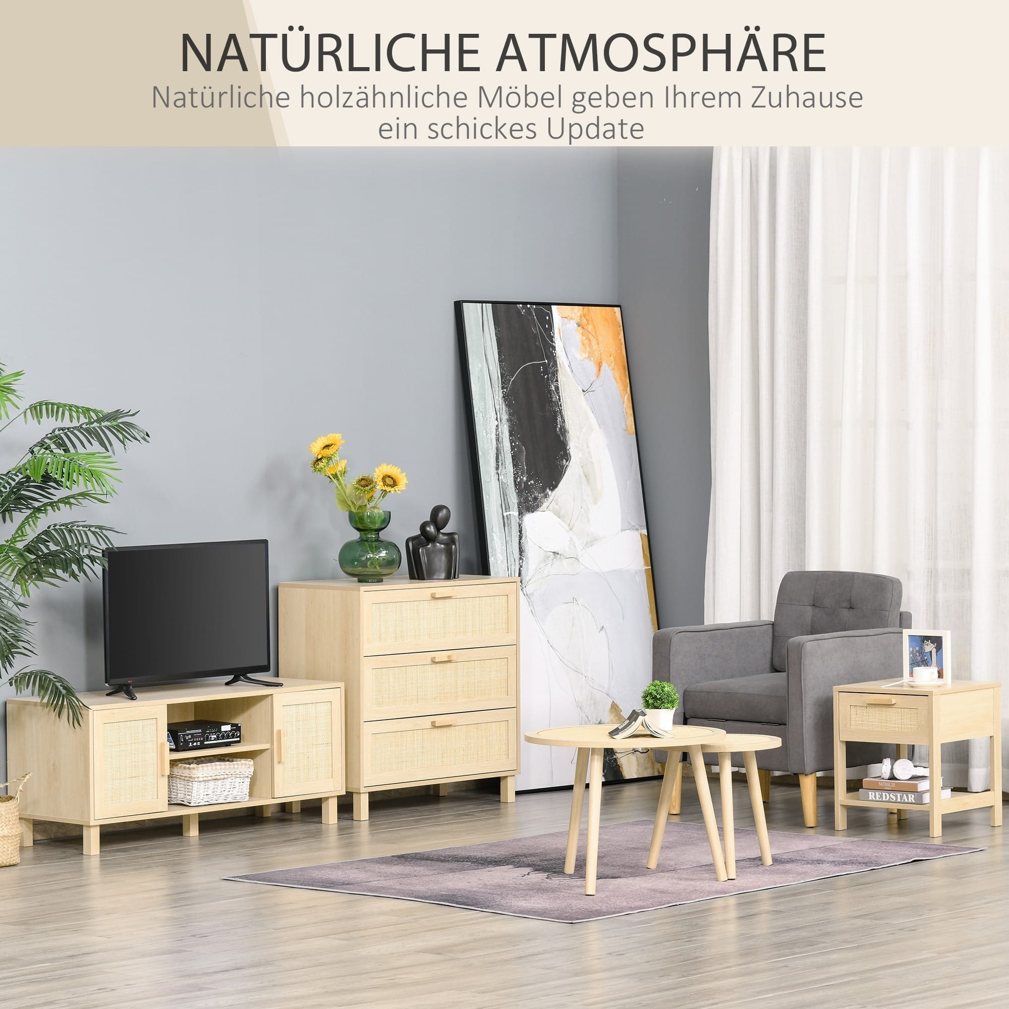 RATTAN WEAVE PANEL: Placed in the middle of the drawer, it adopts a cool and different look for your inside styling, a touch of the outdoors. Great for bedrooms, and similar living spaces allows air in and out the drawer. THREE-PART STORAGE: Features the main drawer, a bottom shelf and flat top, giving you open and closed options. MDF STRUCTURE: A durable and reliable piece for everyday use. Natural wood-effect finish to mix well with both lighter and darker furniture and complement the rattan panel.