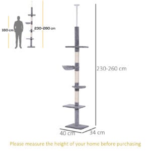 – Cat tree dimensions: 230-260H x 40L x 34Wcm.