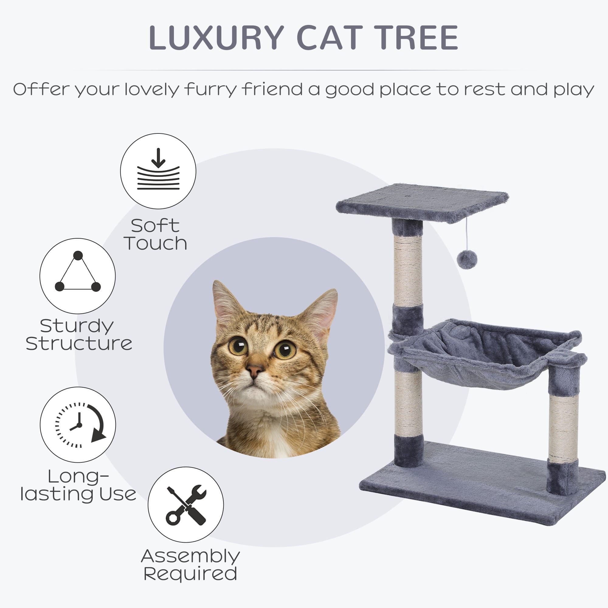 Two-tier rest and relax design, featuring a deep middle hammock, a top perch and a hanging play ball – Particle board frame for strength and durability, with a bottom base to keep it upright and stable.