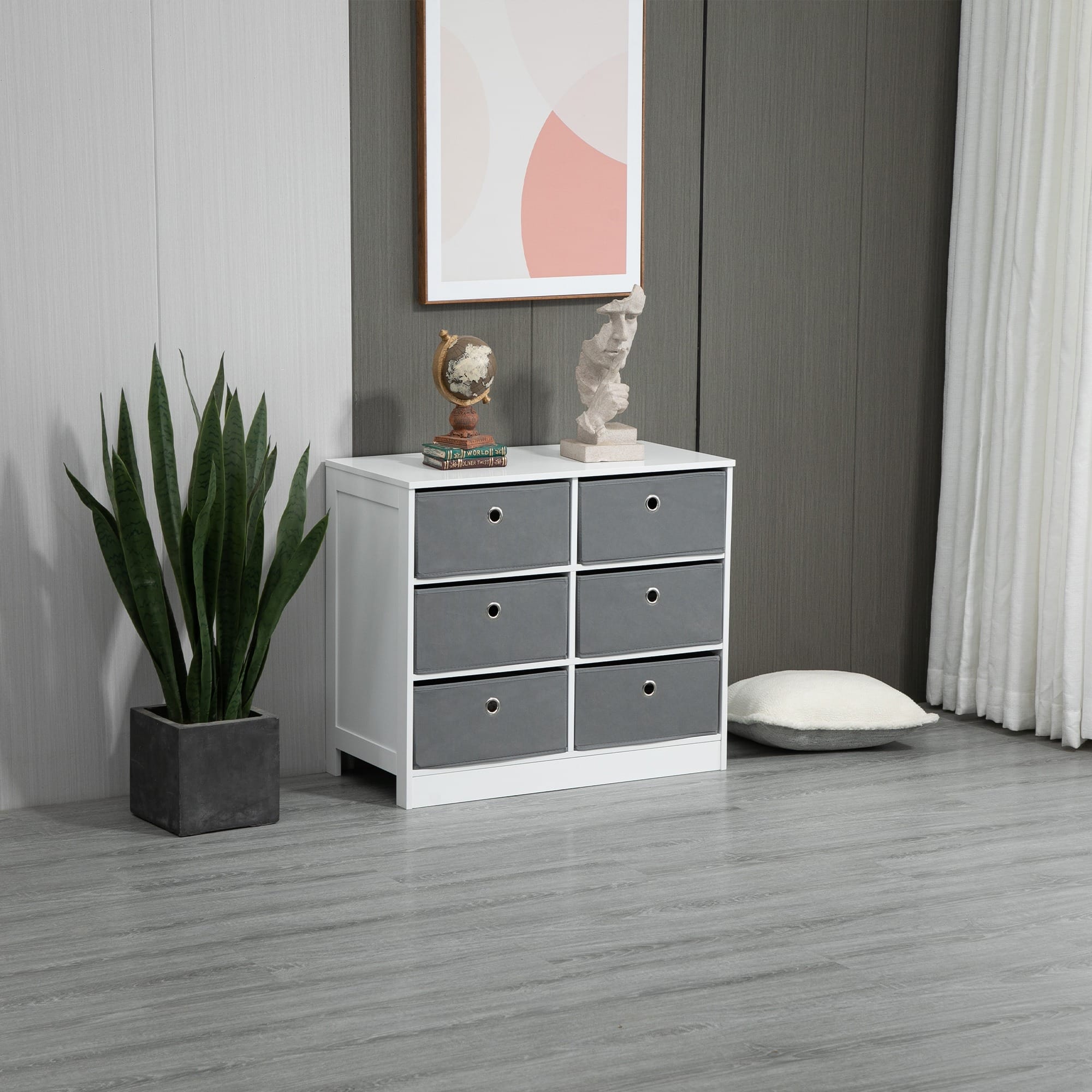 Six fabric drawers for storage. Suitable for bedroom, office, hallways and similar spaces