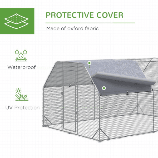 Protection cover: Offers rain and UV protection, keeping pets cool, dry and comfortable when inside this chicken pen.