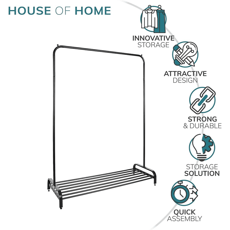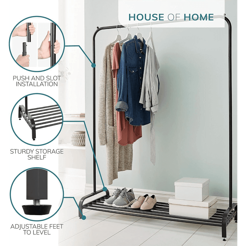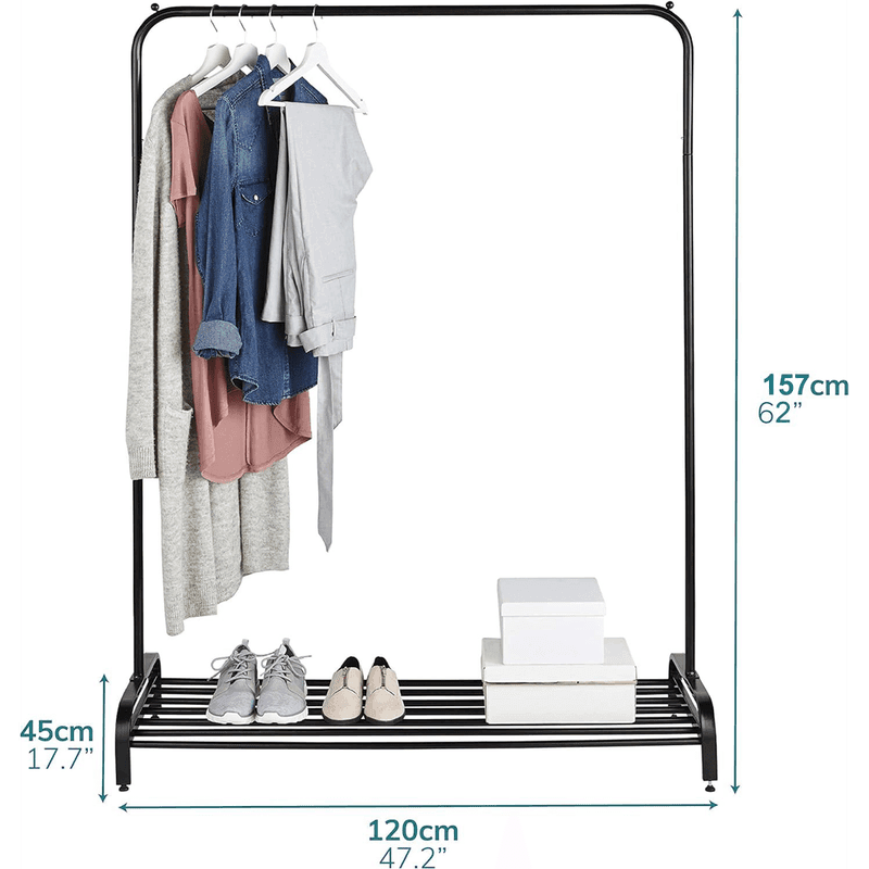 Minimalist and stylish storage solution for hanging clothes and shoe organisation.