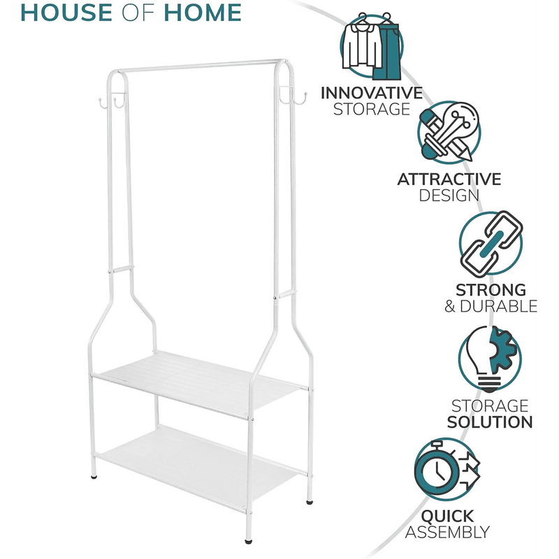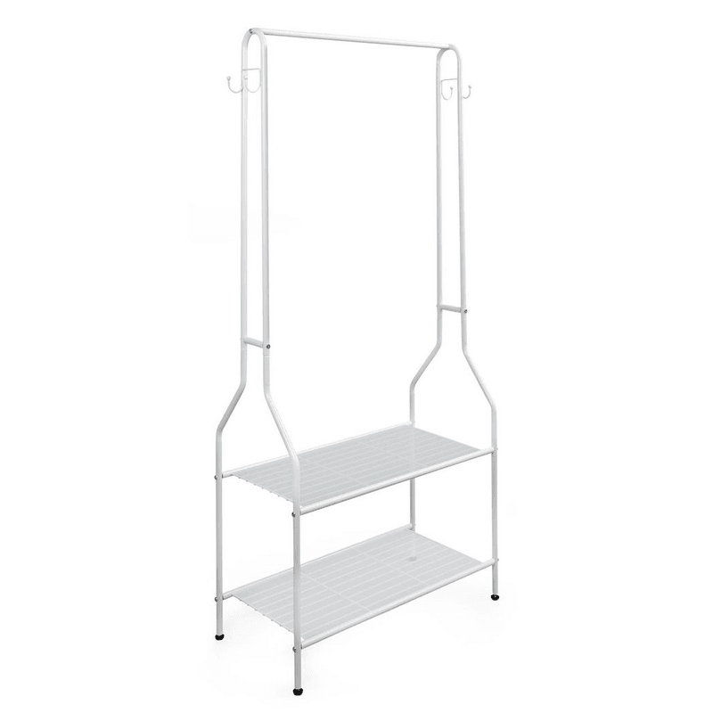 The clothes storage rail features 2 handy hooks on either side which are perfect for hanging bags, umbrellas, scarves and other accessories. The 2 lower shelves provide extra storage and organisation for shoes, boxes and baskets.