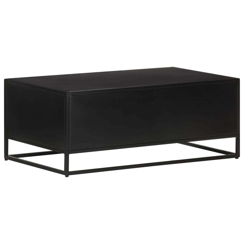 This wooden coffee table adds an industrial look and is a perfect choice for your existing living space. This accent table is handmade of rough mango wood, a tropical hardwood with the strength to bear the weight. It also stands the wear and tear of time, making it stable and durable. The powder-coated iron frame also adds extra stability. This couch table also features a door with hand carved pattern and a compartment providing ample storage space to keep your item organised and within reach. Important note: Colours and grains vary from piece to piece, making each piece unique; the delivery is random.