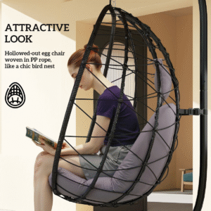 Ideal for relaxing in your garden, patio, or living room, this egg-shaped chair is perfect for anyone looking to unwind and enjoy a moment of peace. It’s an excellent addition to outdoor parties or a serene reading corner.