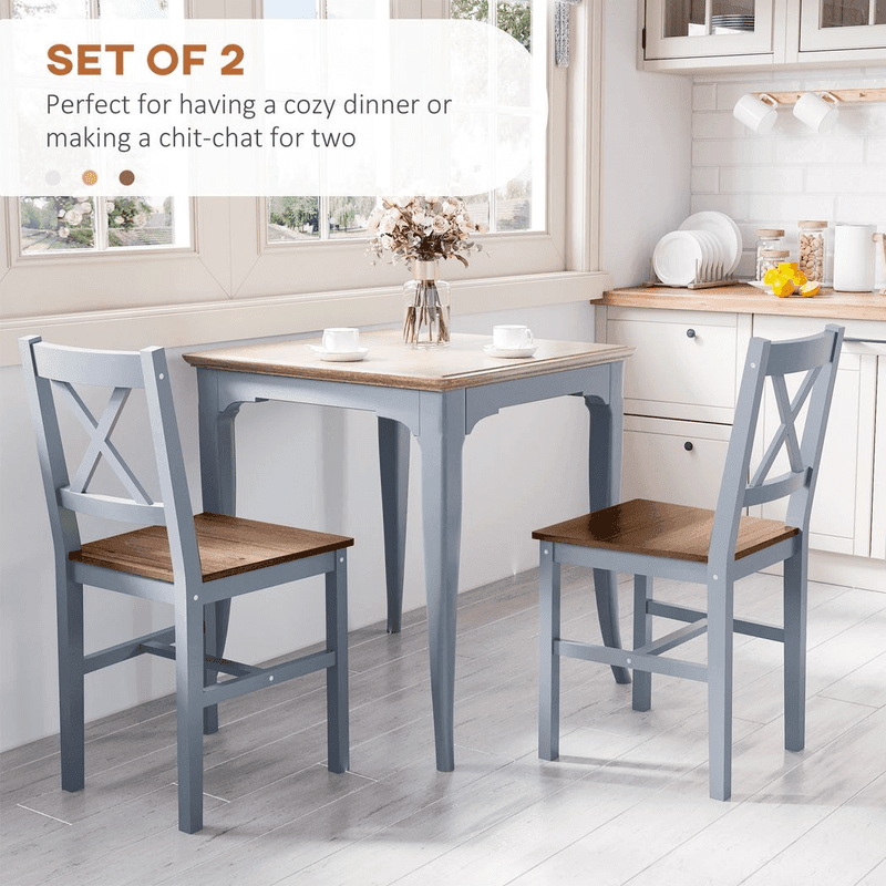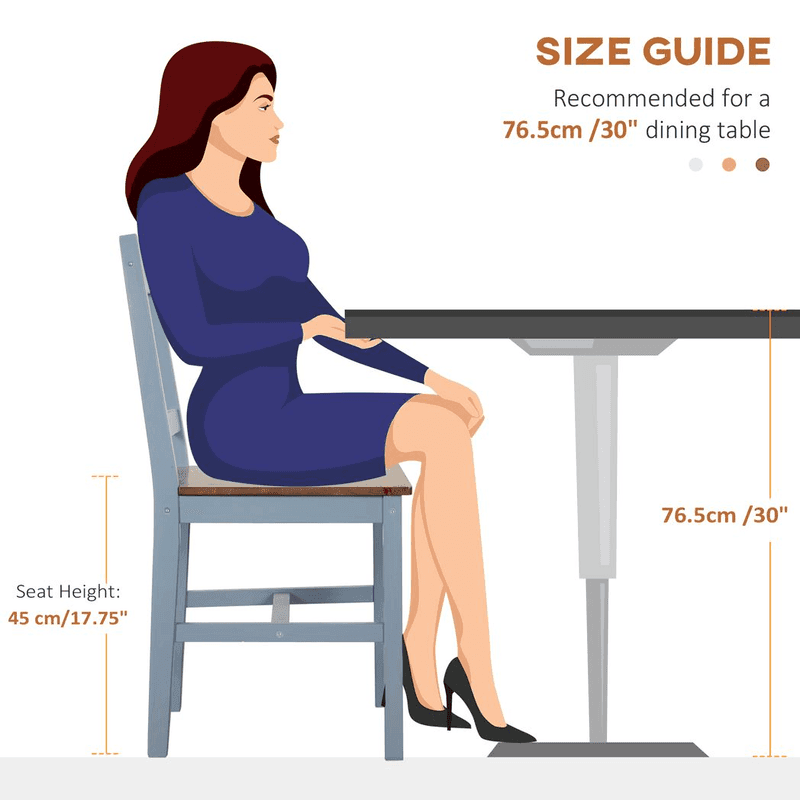 Wooden Frame: Both kitchen chairs are made from pine wood – strong and supportive. For prolonged use. Painted finish for gentle protection.